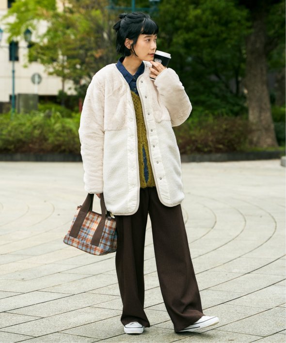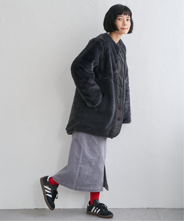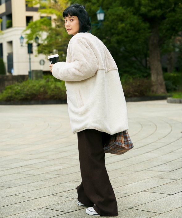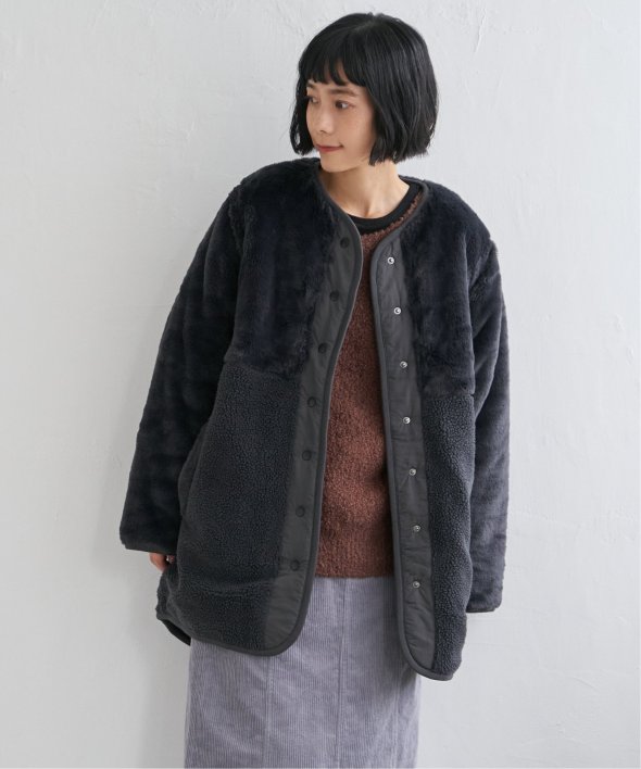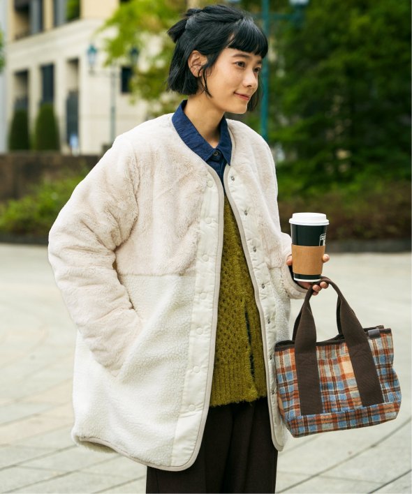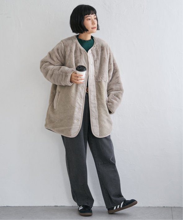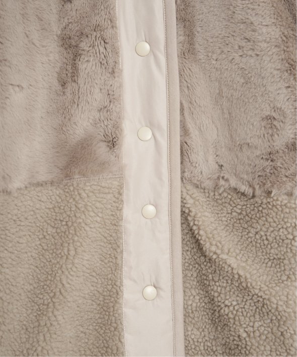 上品なフェイクファーとカジュアルなボアとのコンビ。