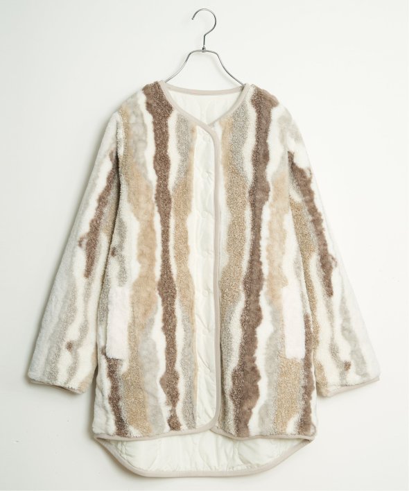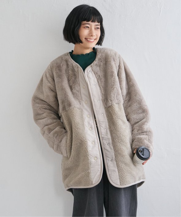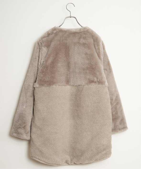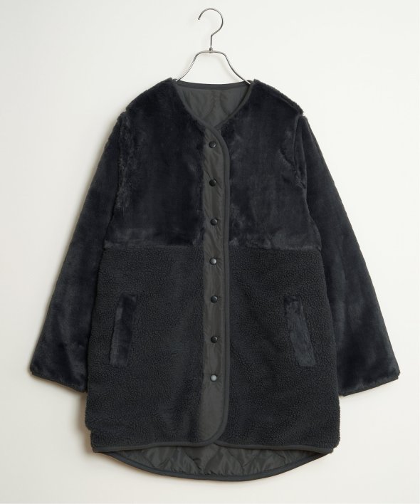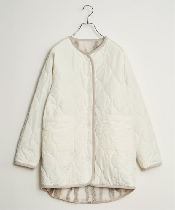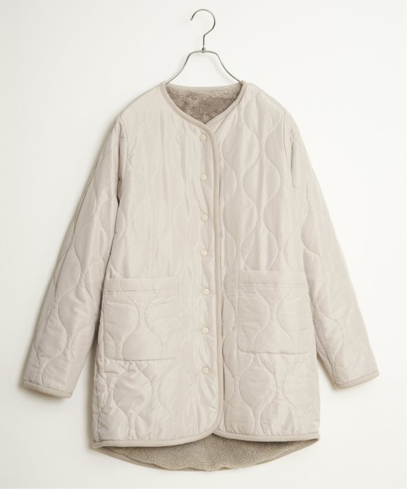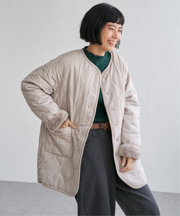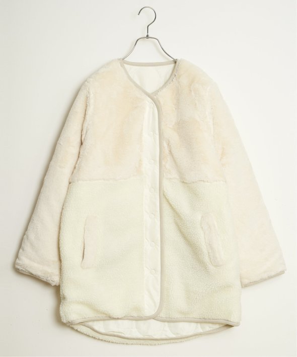 フェイクファー×ボア・ひょうたんキルティングのリバーシブルコート。