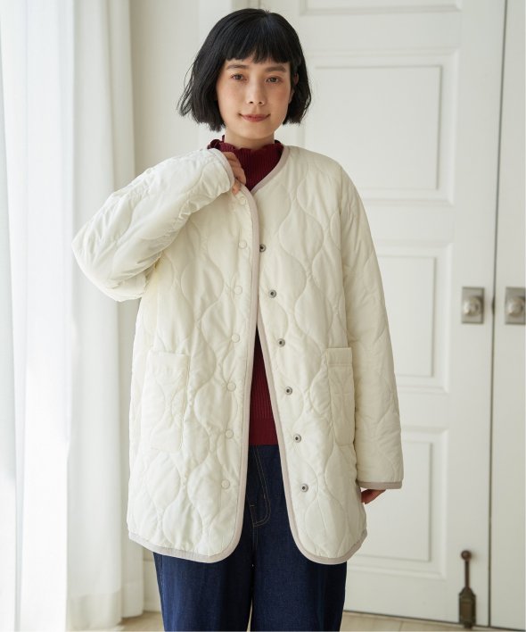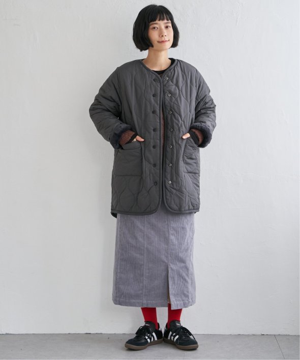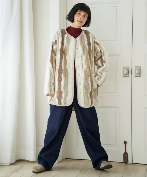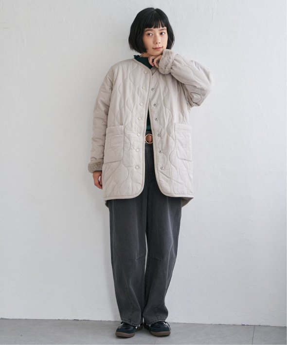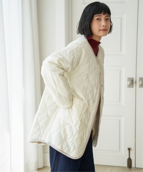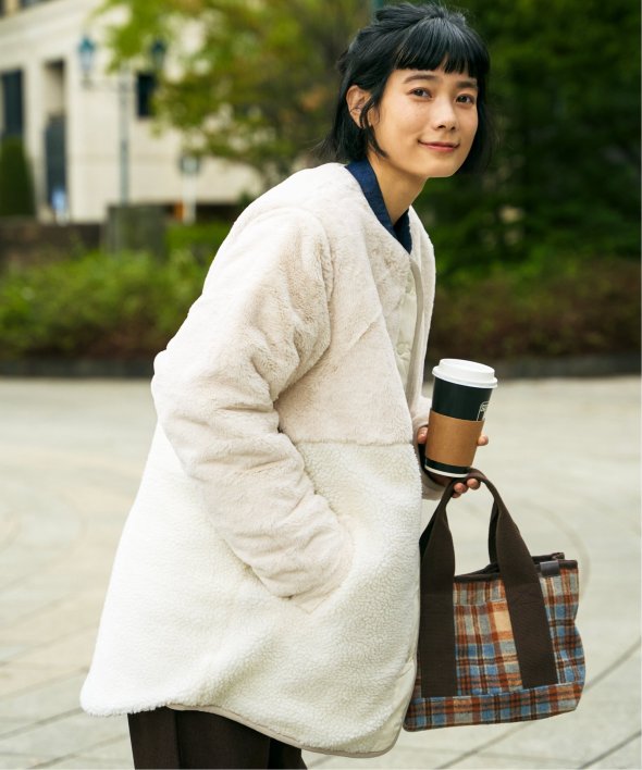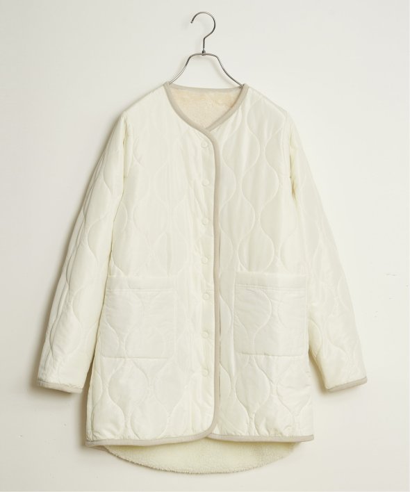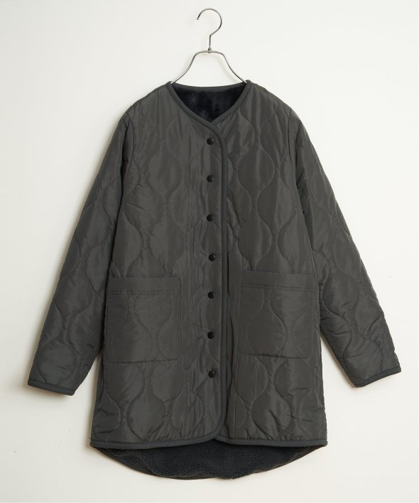 フェイクファー×ボア・ひょうたんキルティングのリバーシブルコート。