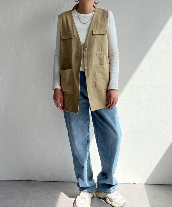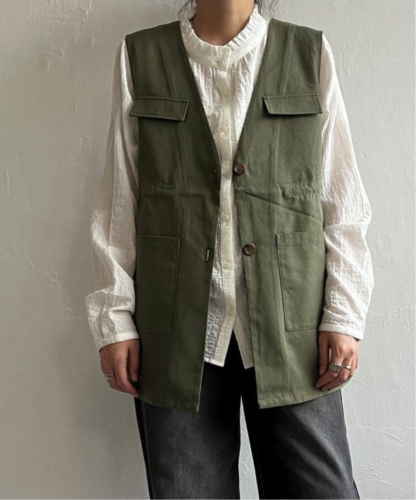 ミリタリーベストのディテールを採用しつつ、ジャケットのようなきちんと感も兼ね備えました。