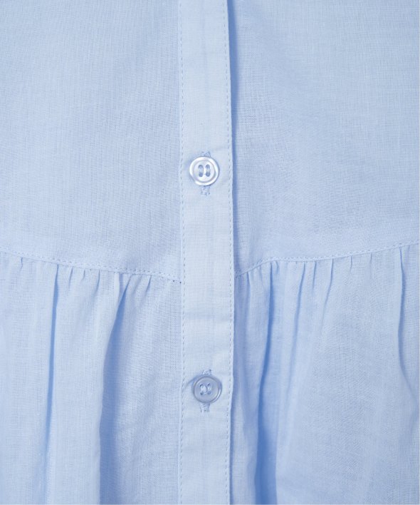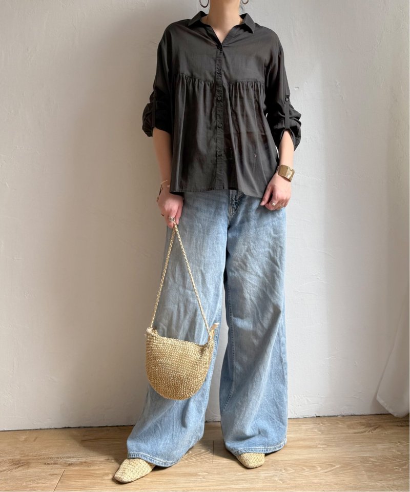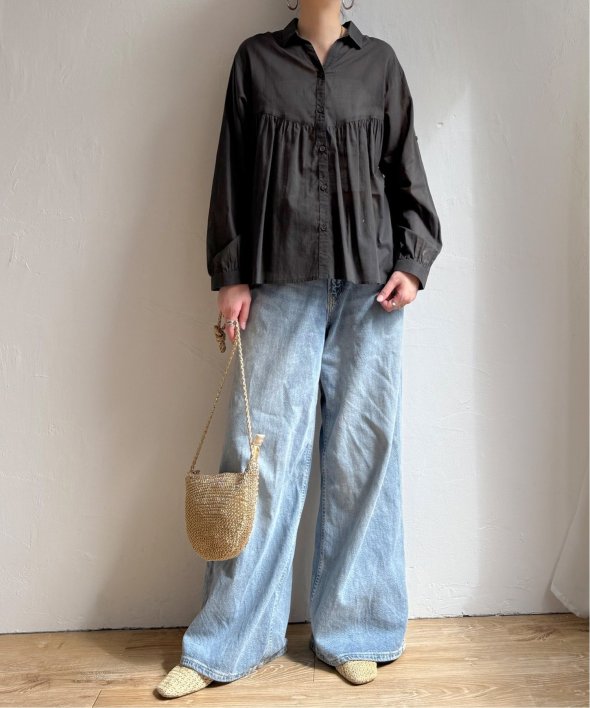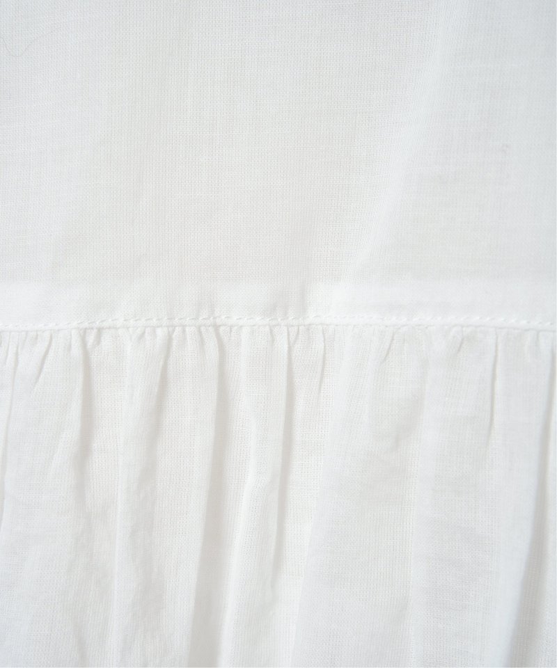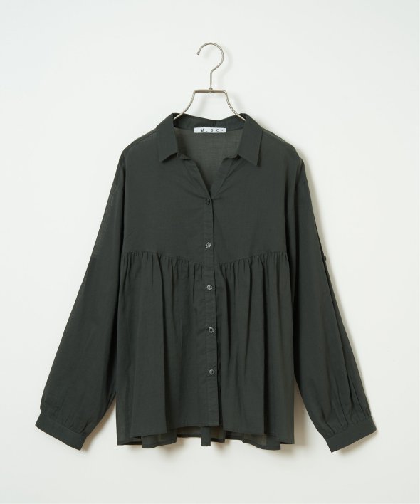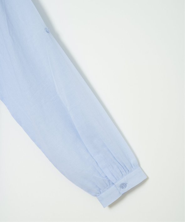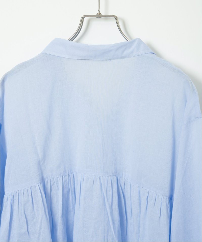 やわらかなコットンボイル素材を使用したブラウスです。高めの切り替えからふんわりと広がるギャザーが、シルエットに女性らしい表情を添えます。【素材】エアリーな綿ボイル。【デザイン】高めの切り替えからふんわりギャザー。【ポイント】エアリーな素材感がギャザーのデザインとマッチしたシャツライクブラウス。ワイドボトムとの相性もよいです。