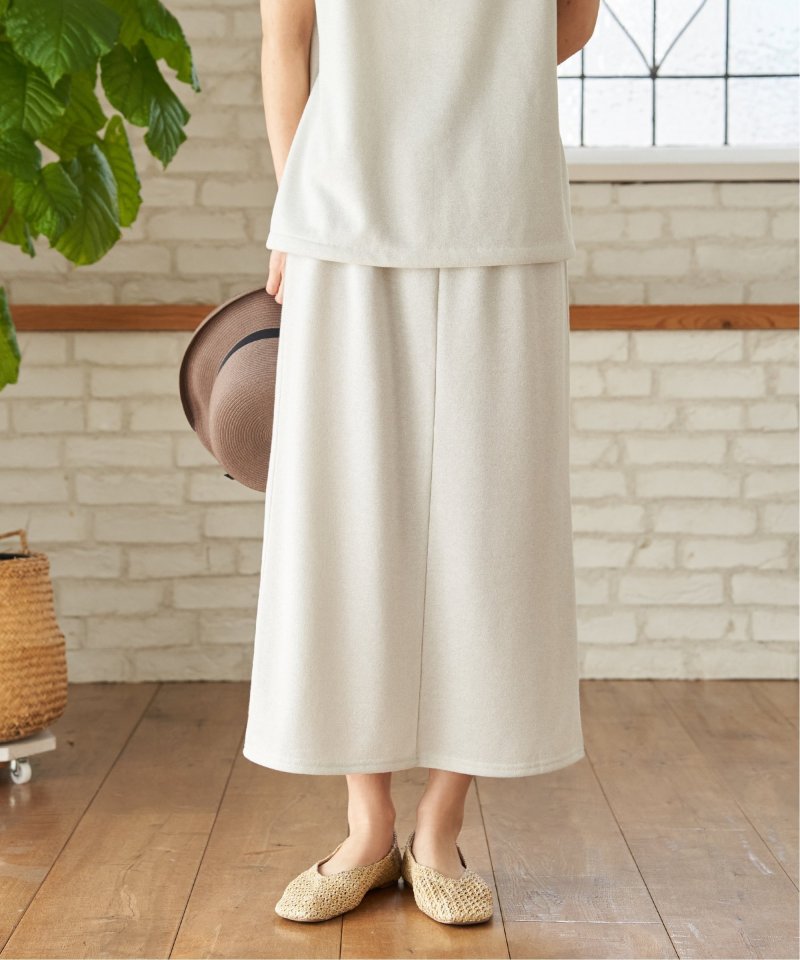 カジュアル素材に上品な光を添えた裏毛スカート 【先行予約】ラメ裏毛Iラインスカート