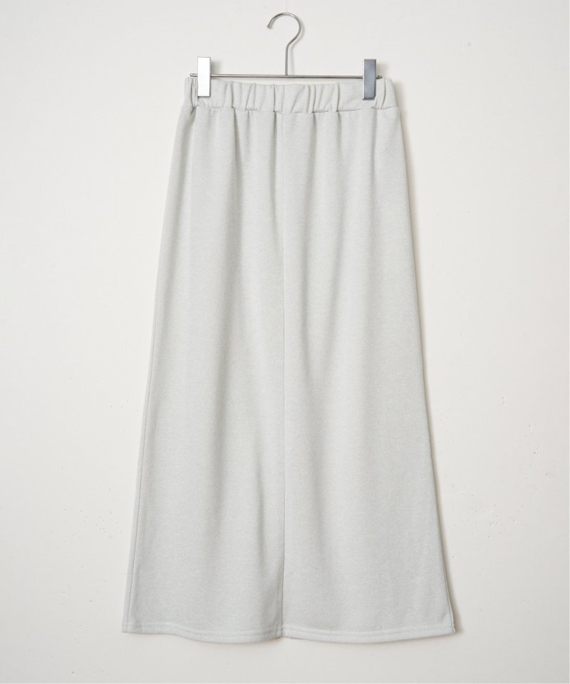 細かく繊細にラメを織り込んだ裏毛素材を使用した、さりげない表情のIラインスカート。