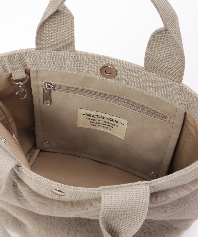 秋冬コーデに取り入れたいもこもこフェイクファーのミニョントートバッグ。シンプルなワンカラーから、アニマル柄まで取り揃えております。ファスナー付きの内ポケットがあり、貴重品の収納も安心。さらに、内ポケット部分を逆サイドのボタンに留めてバッグに蓋をすることも可能です。【素材】ポリエステルのエコファー。【デザイン】定番中型サイズの手提げトートバッグ。【ポイント】定番のミニョントート!・内側にファスナー仕様のポケット付き・中央はマグネット付き・テープとファーは微配色仕様