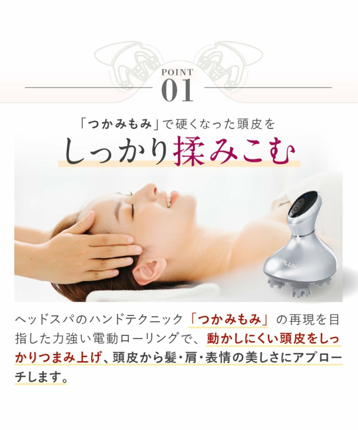TDCBS 他の画像を見る EMS搭載!全身にも使えるプレミアムなヘッドスパ NIPLUX EMS HEAD SPA PREMIUM ニップラックス EMSヘッドスパプレミアム ¥ 19,800 税込 カートに入れる お気に入りに登録する