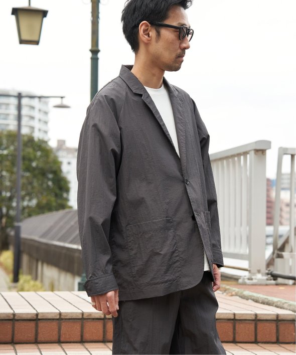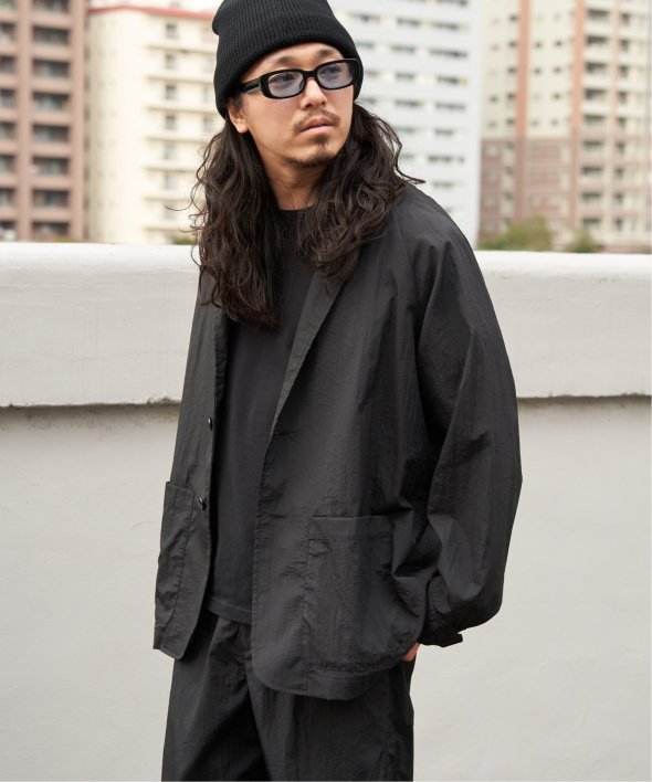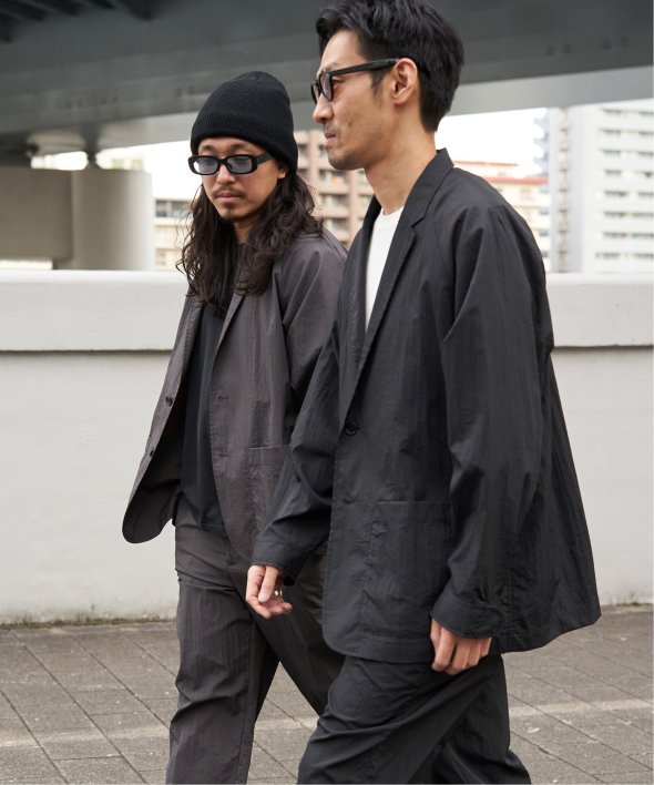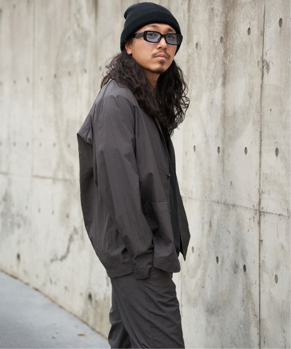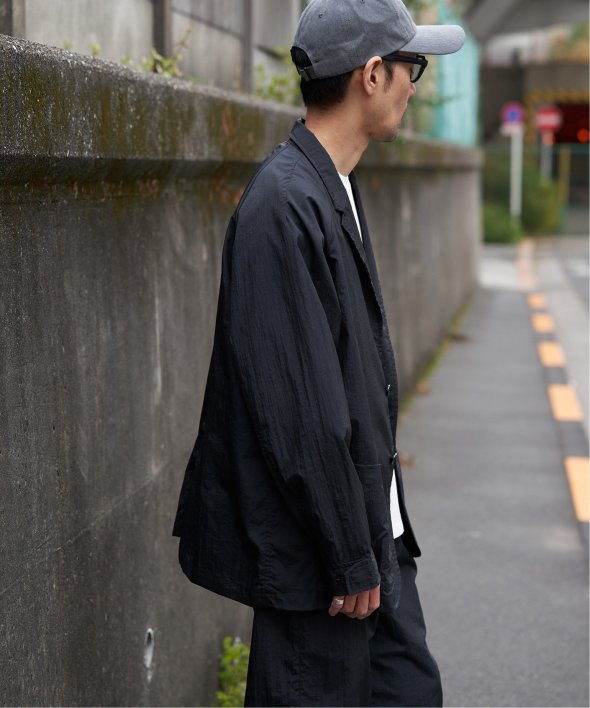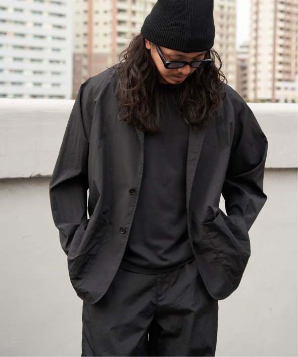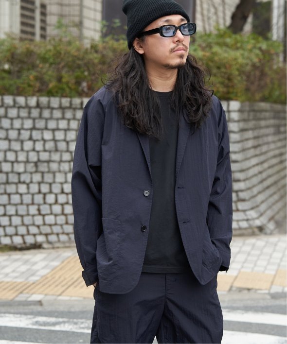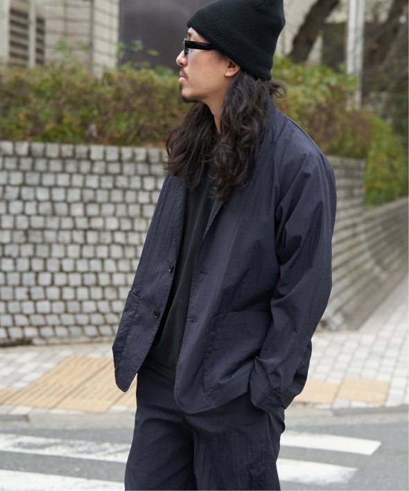 セットアップでの着用はもちろん、ナイロン素材のジャケットはデニムやカーゴパンツなどカジュアルなボトムと好相性。