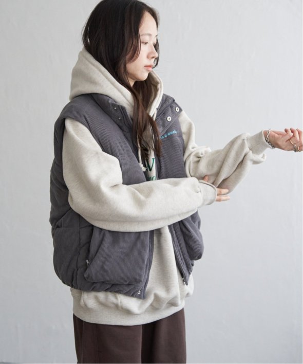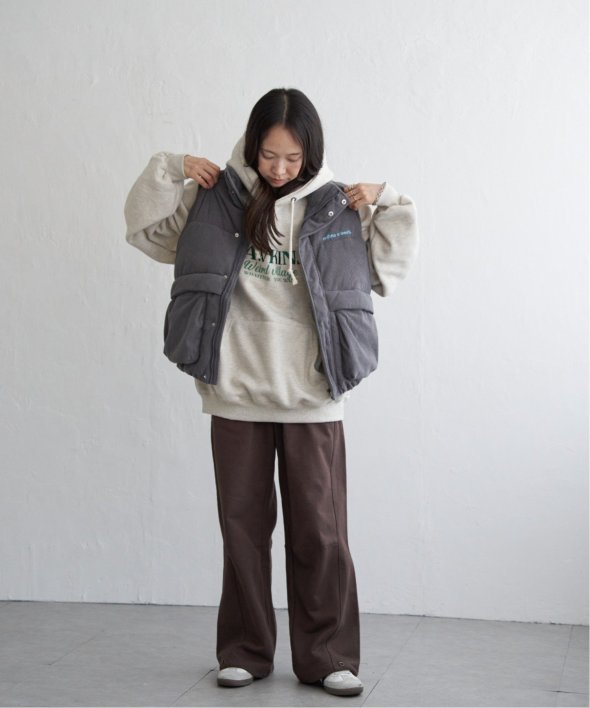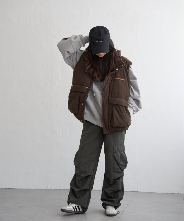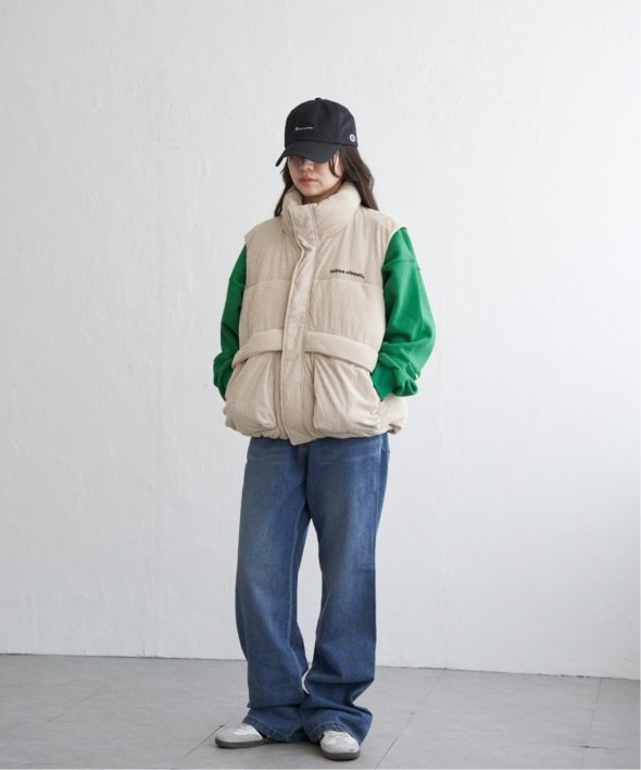韓国らしいワイドな身幅のパデットベスト。