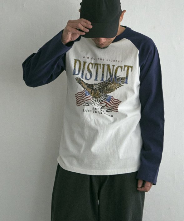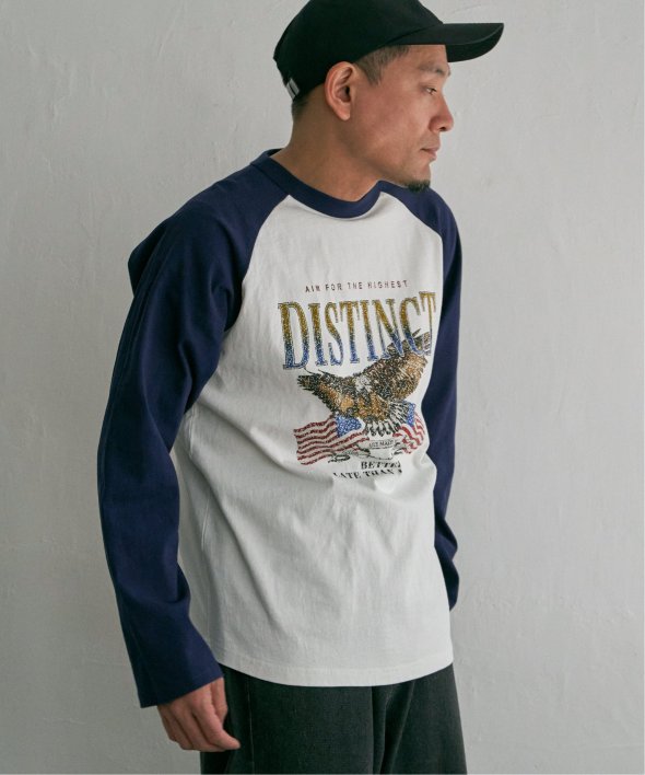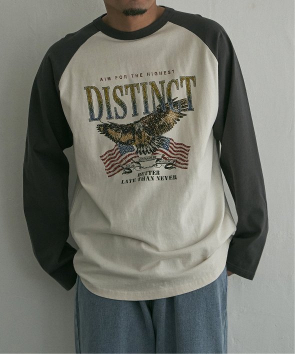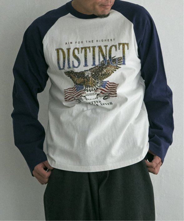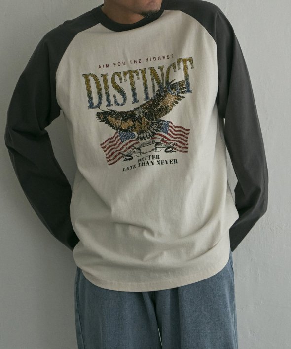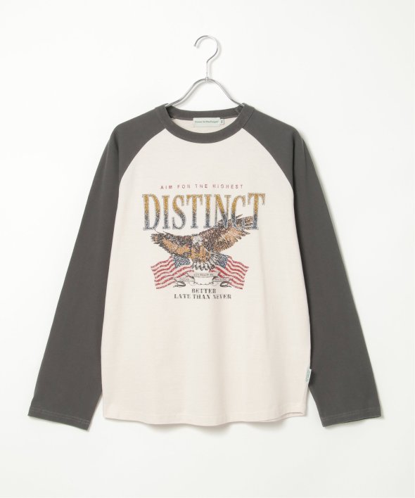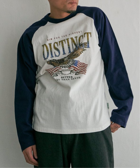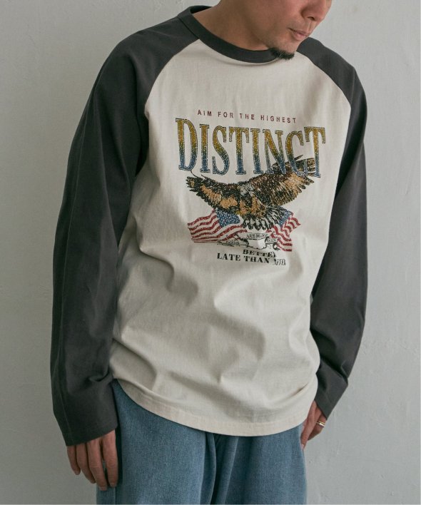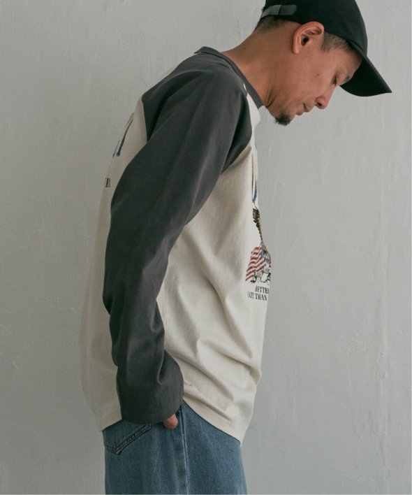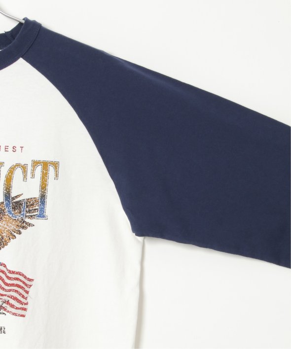 古着のようなデザインのラグランTシャツ。