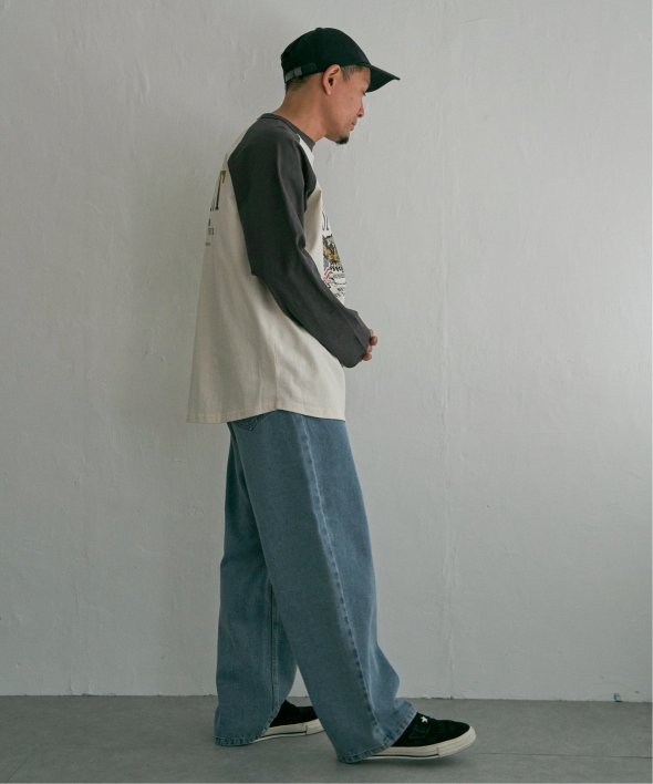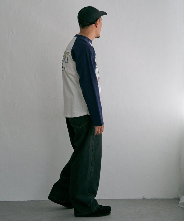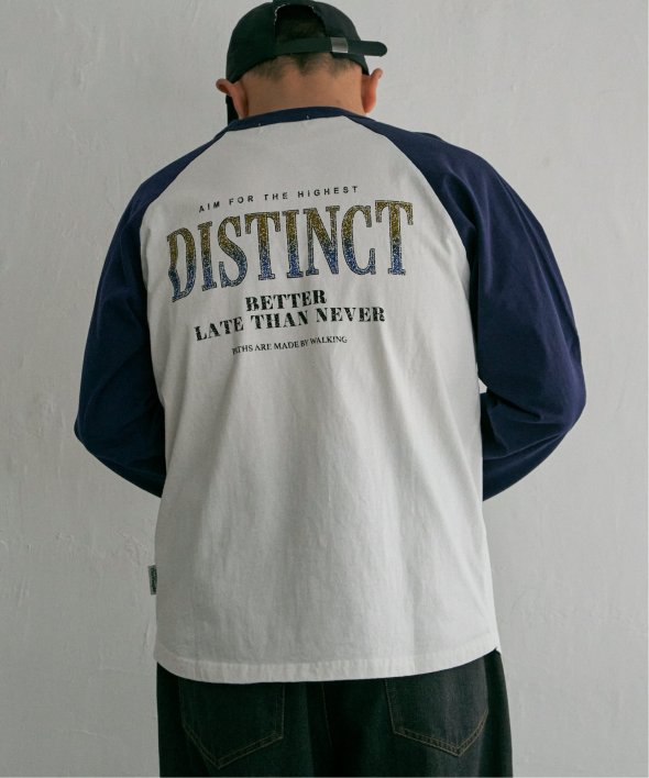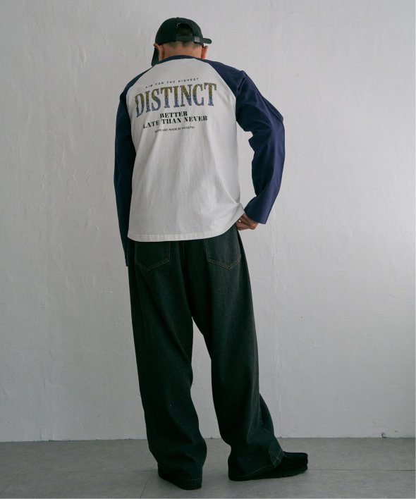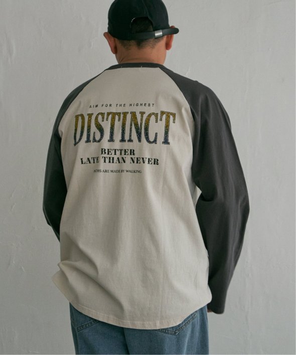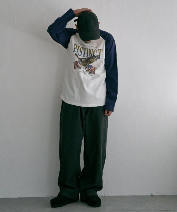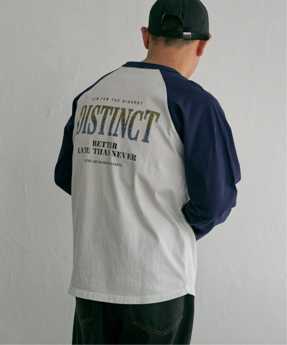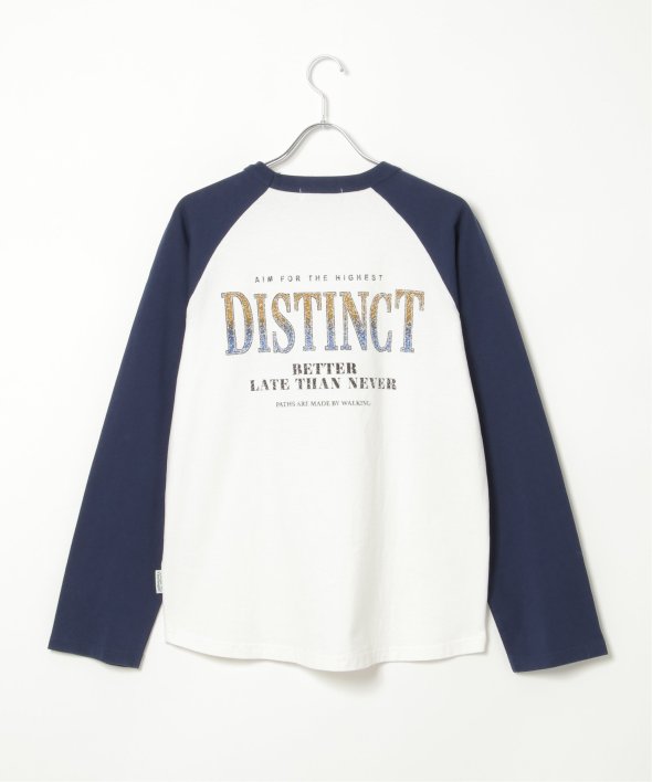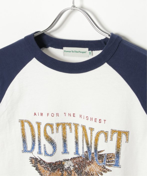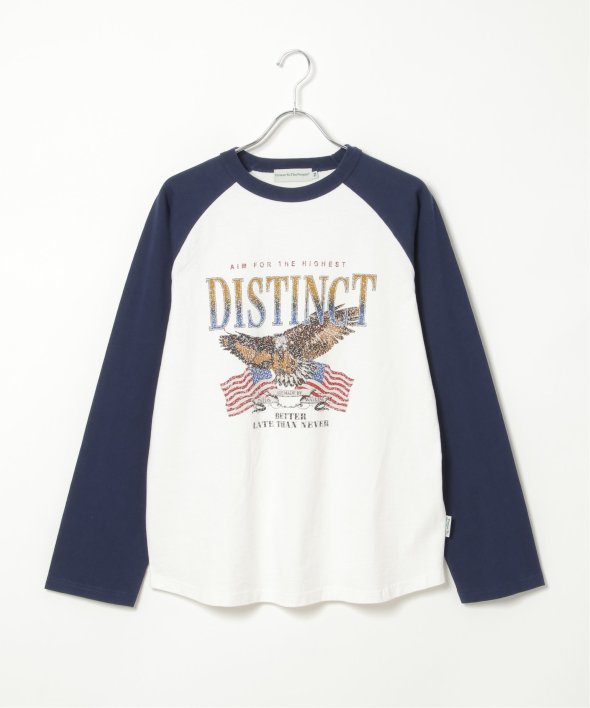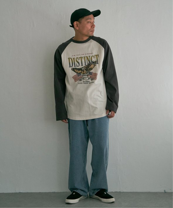 古着のようなデザインのラグランTシャツ。