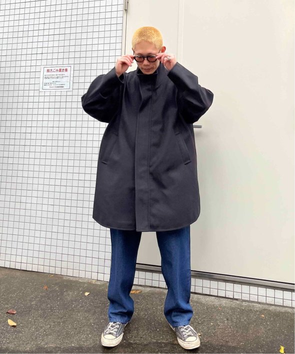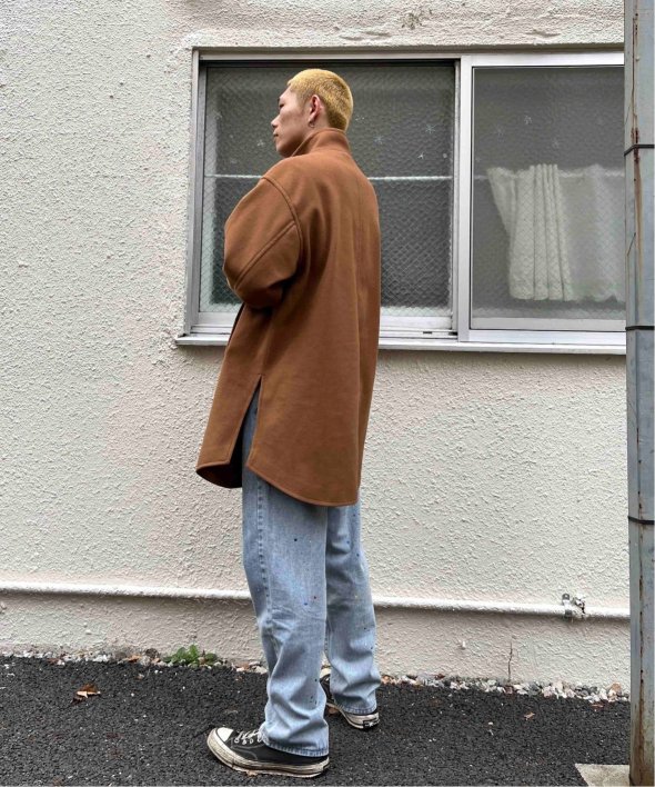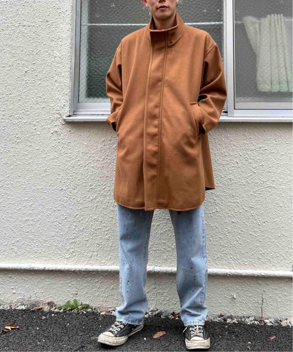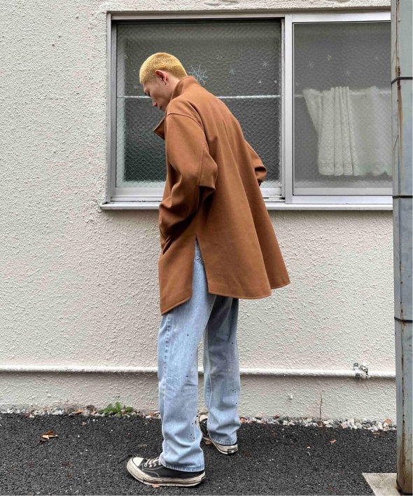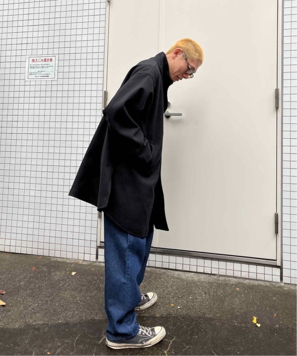 ゆとりのある身幅と丈なのでニットなど厚手のインナーや、インナーダウンなどとも合わせ気温に合わせた防寒対策が出来ます。