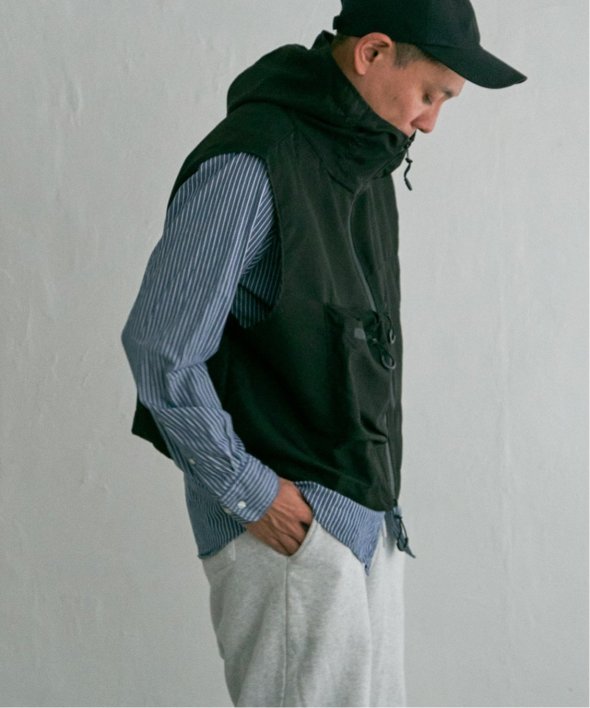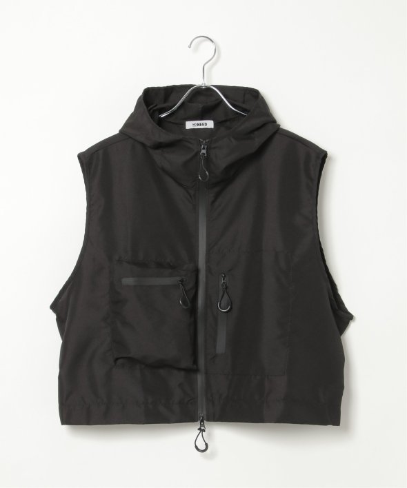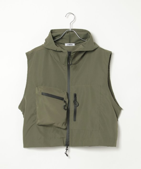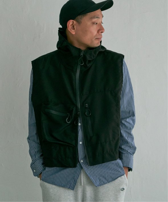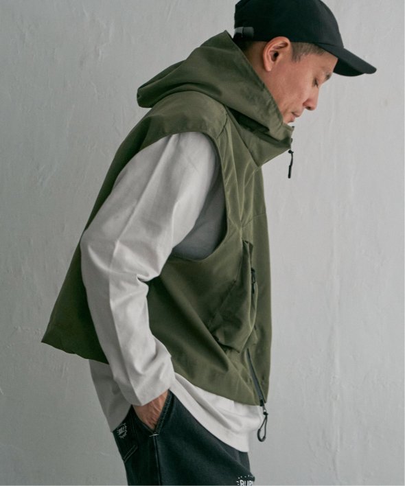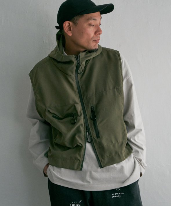ショート丈×フード付きで、より今っぽく着こなせるミリタリーベスト。