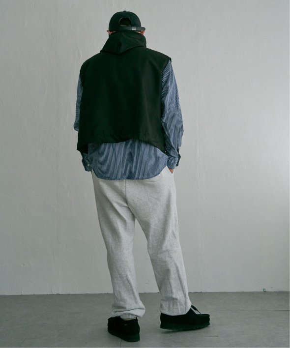 ショート丈なので、スウェットなども上から重ねるだけでバランスの良いコーディネートに。