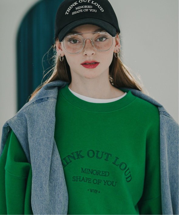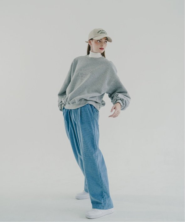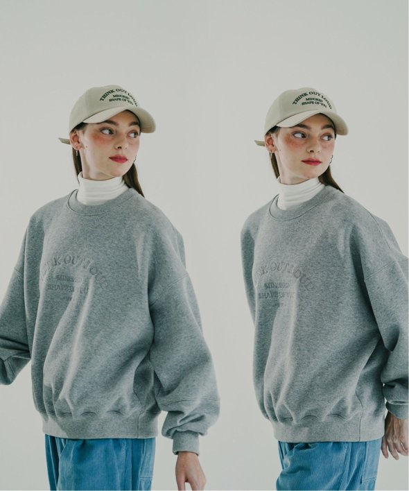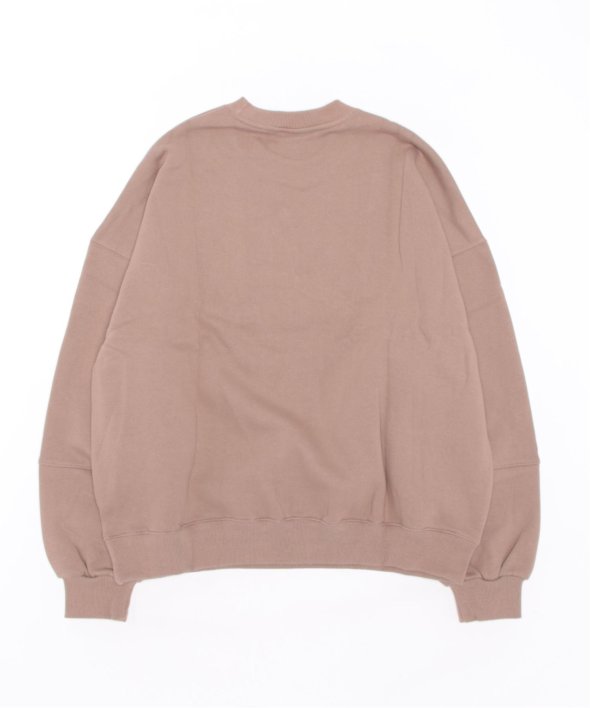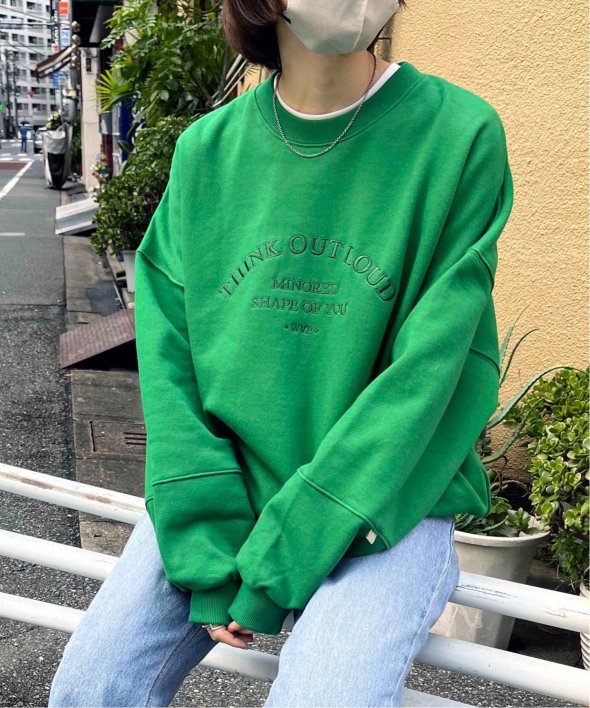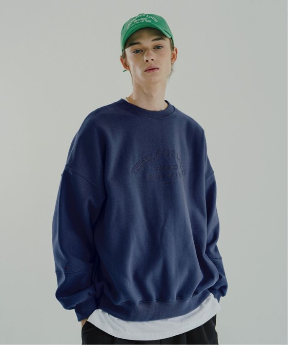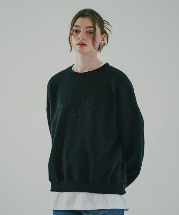 フロントに古着のような刺繍が施されたスウェットシャツ。