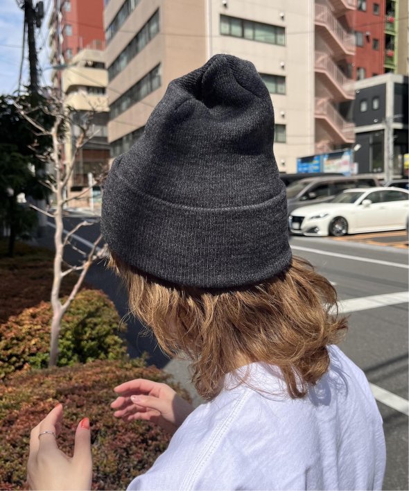 縦長のビーニータイプで折り返しによりお好みの長さに調整可能です。