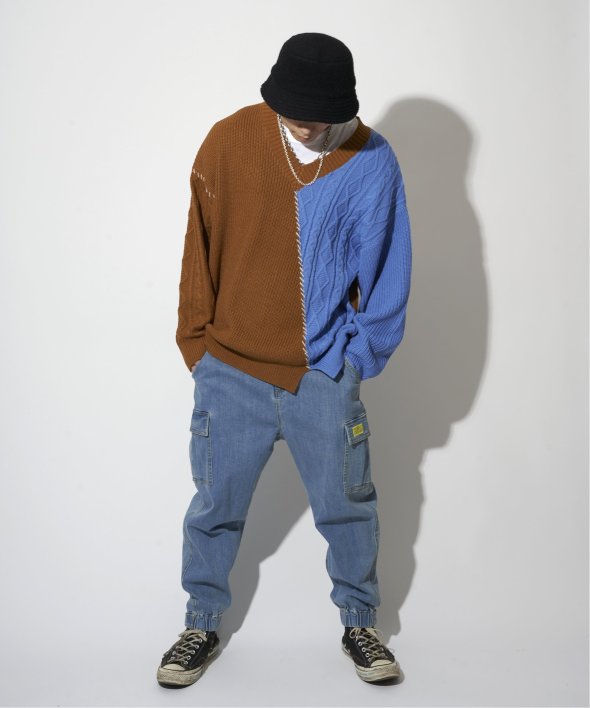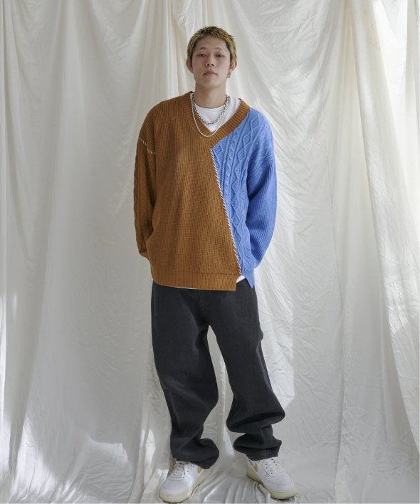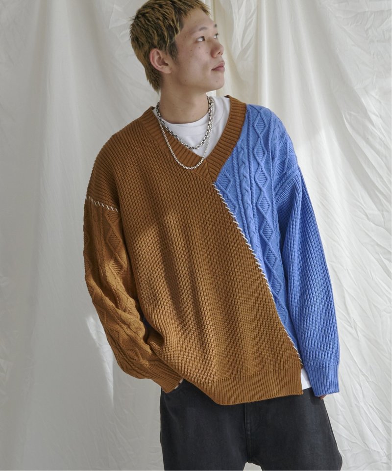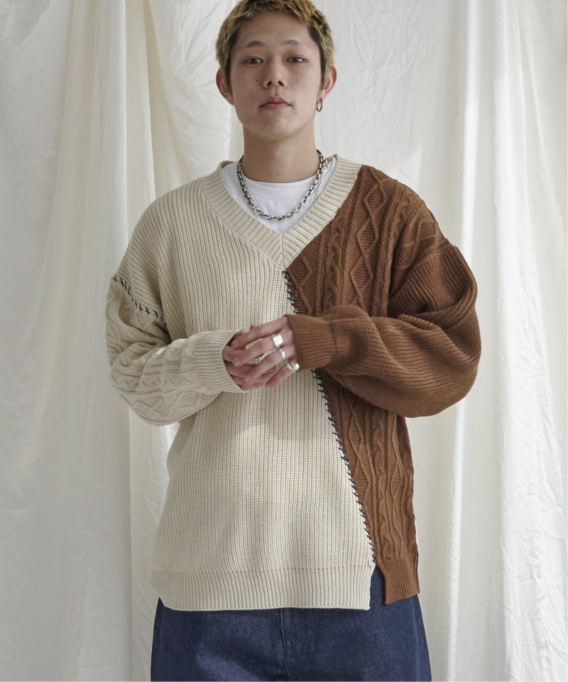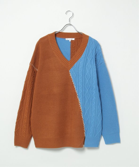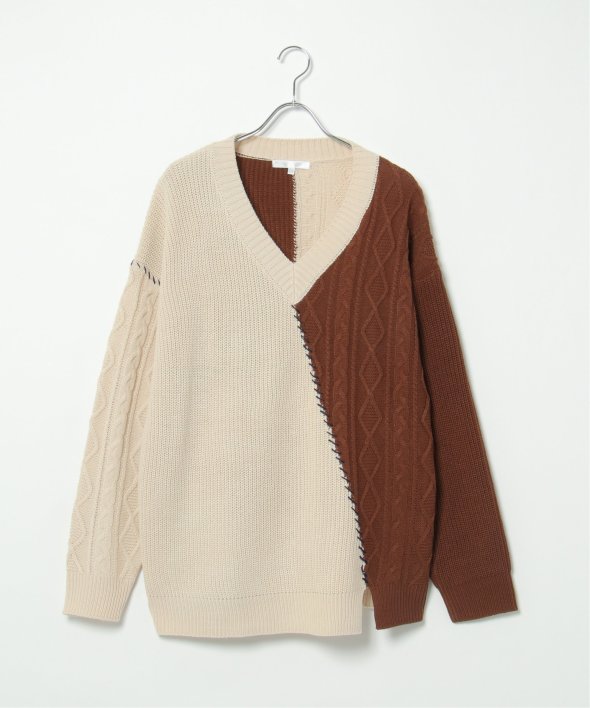 ステッチや切り替えなど、リメイク風の細かなディティールが他にはないデザインニット。