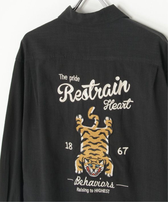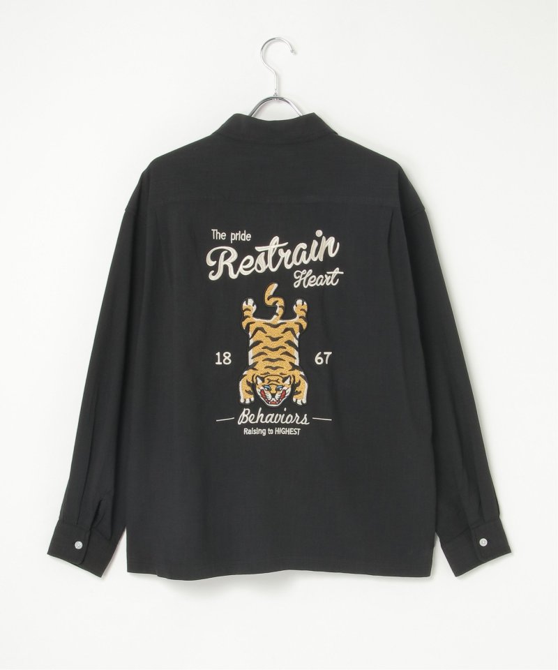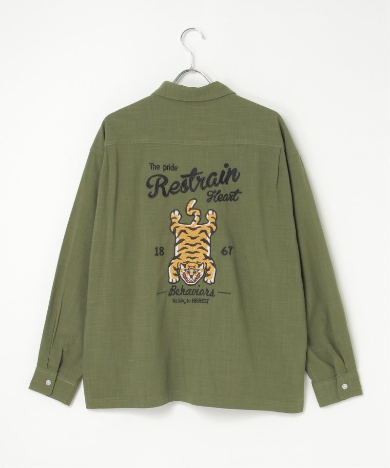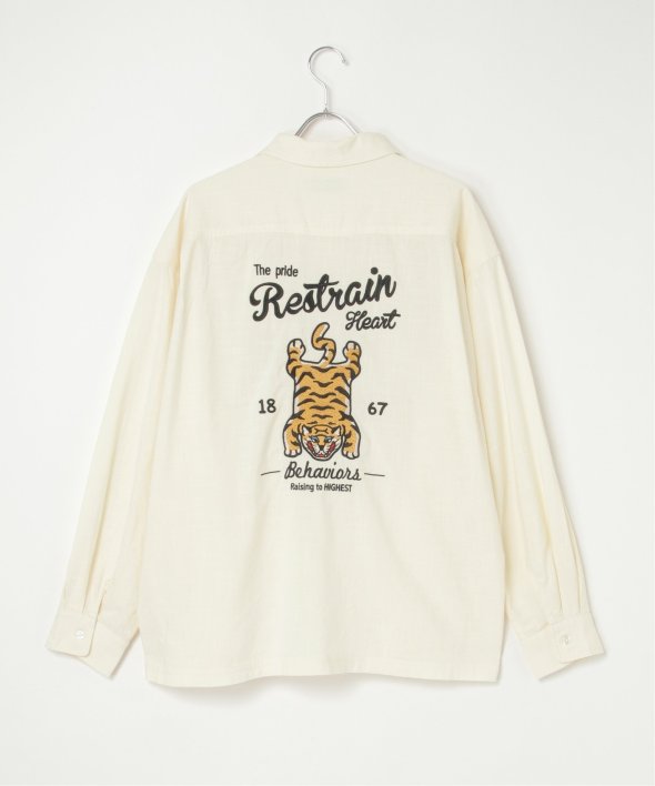 背面に大胆なトラ刺繍を施した、存在感抜群の麻ライクシャツ。