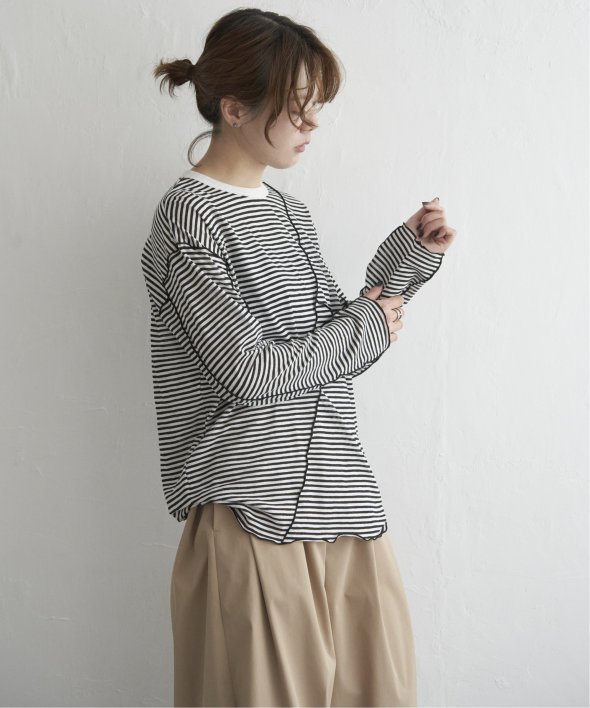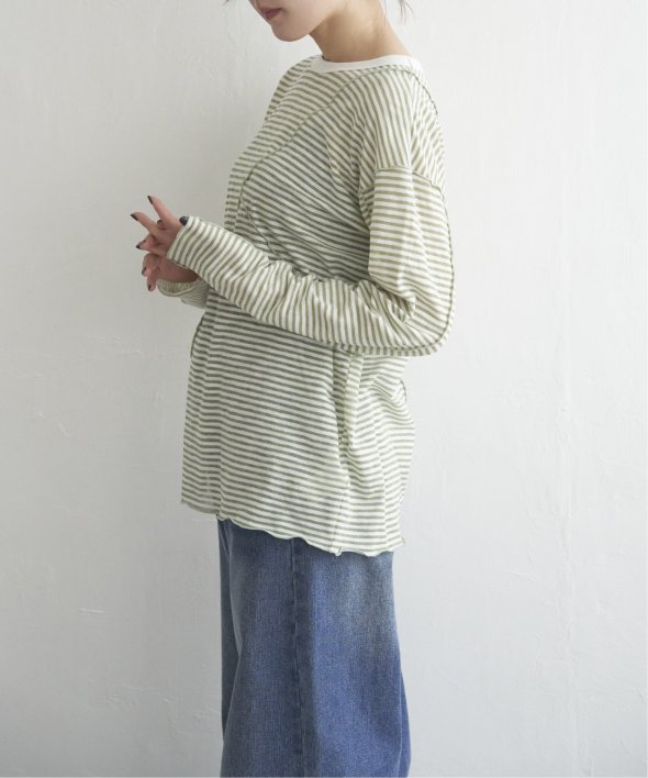 カジュアルなボーダー柄にシアー素材の抜け感をプラスした、大人のためのメローTシャツ。