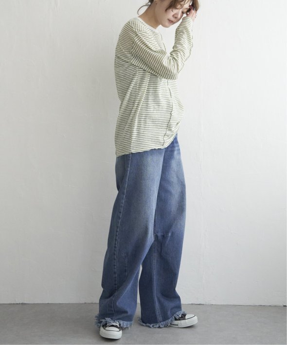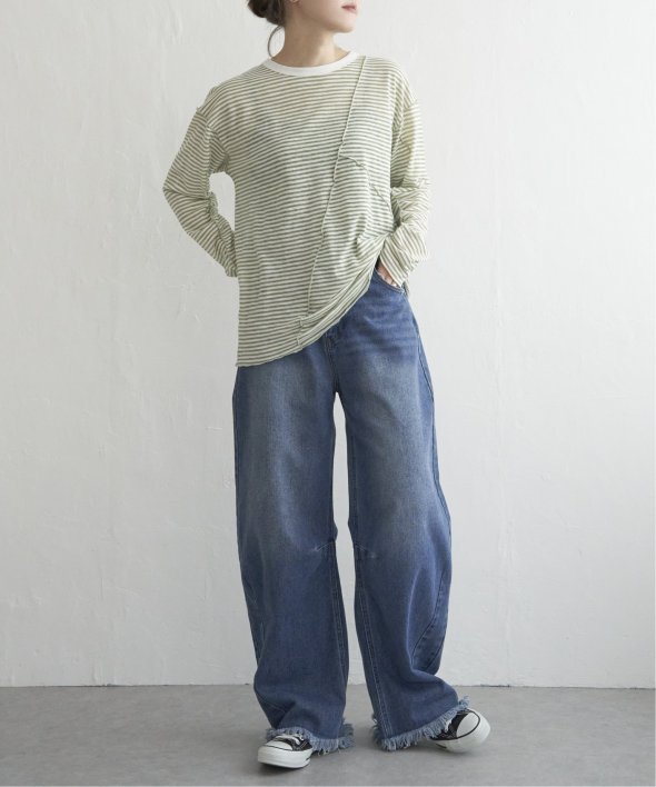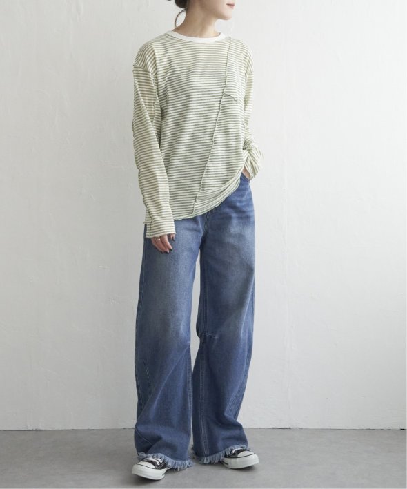デニム+スニーカーで、定番ボーダーをシアー素材でアップデート。