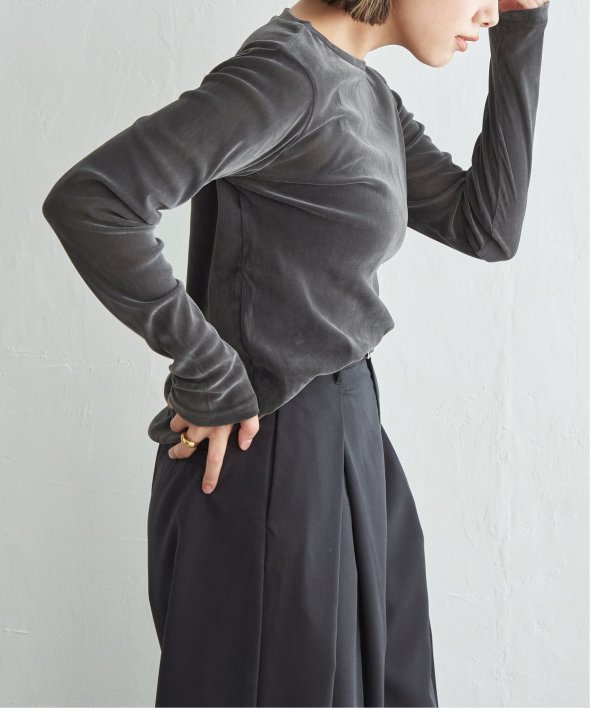 シンプルなフォルムに上品な素材感をまとわせたシアーベロアロン。