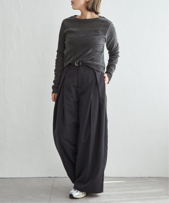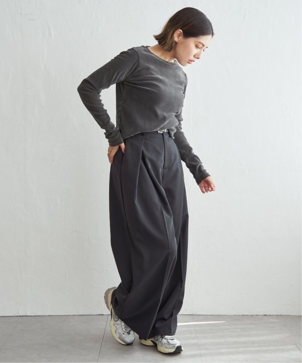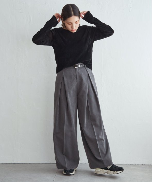 タックパンツやスラックスと合わせてシンプルモードに。