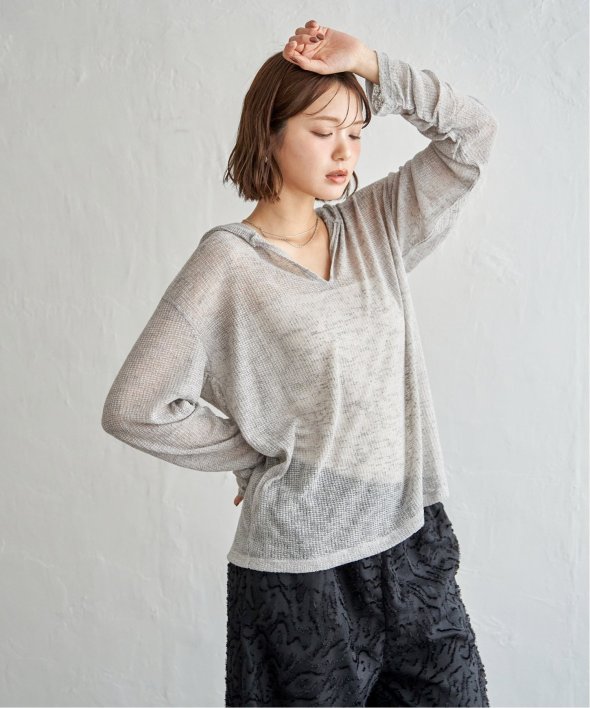 軽やかな透け感とワッフル特有の凹凸が魅力のシアーワッフルロンT。