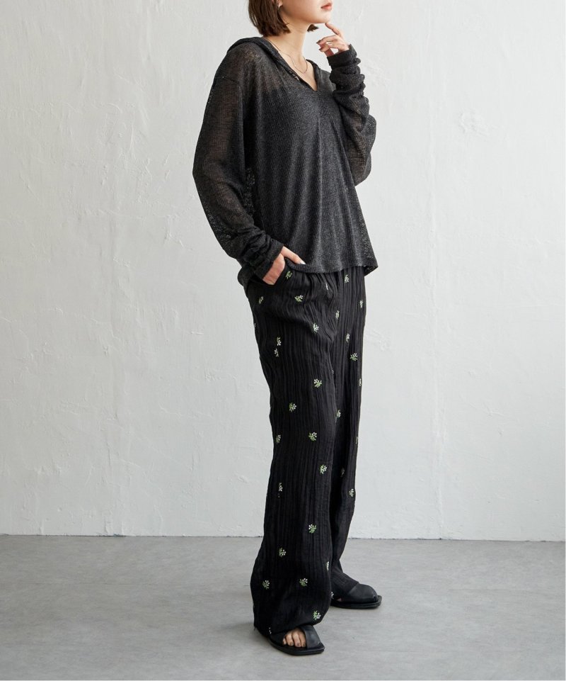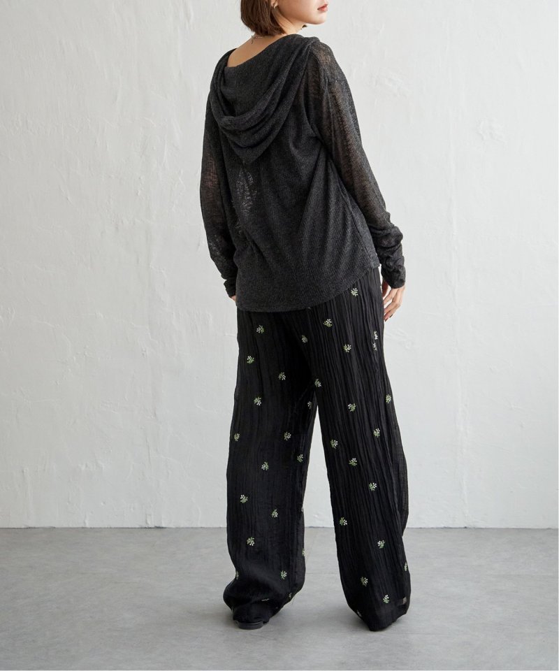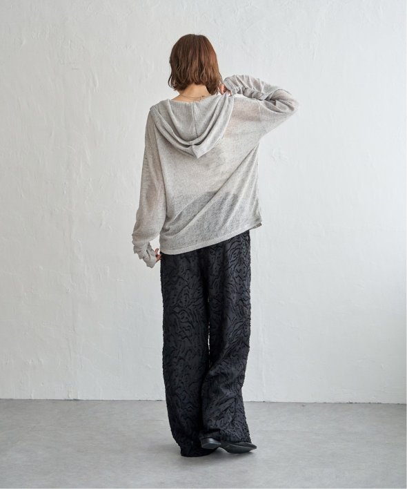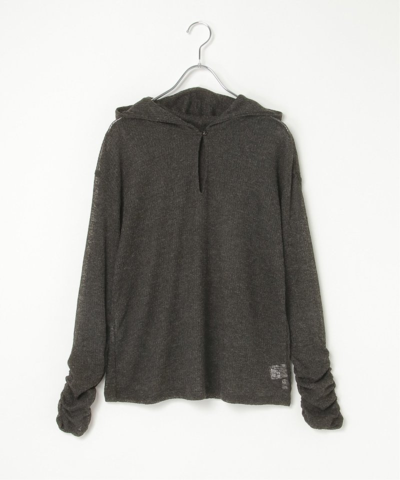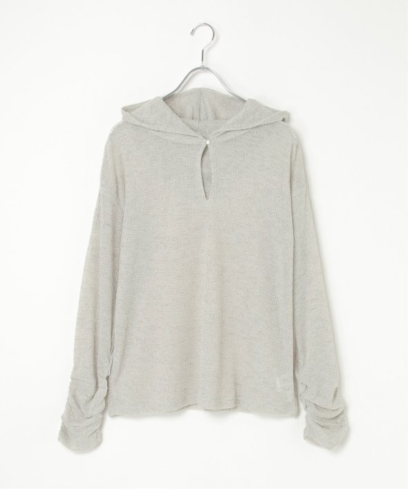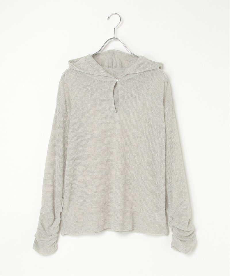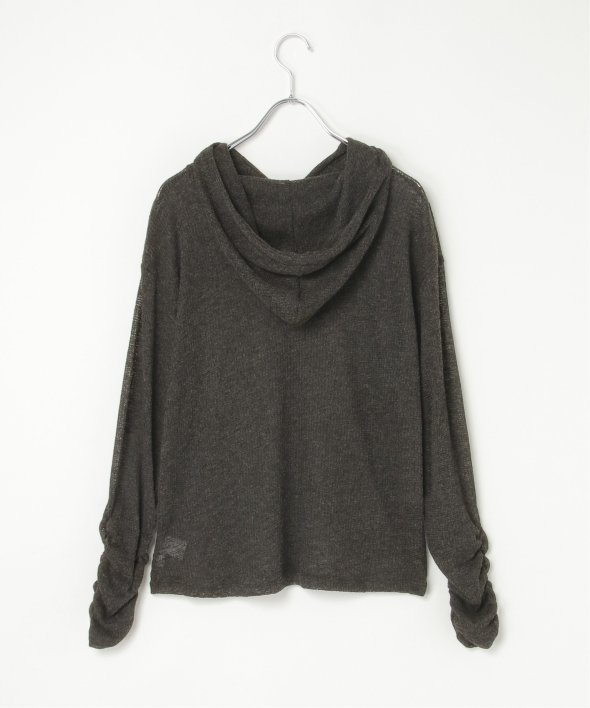 フード付きのデザインに、袖口のくしゅっとしたフォルムがさりげないポイント。