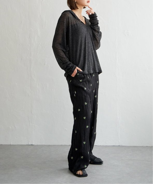 インナーにタンクトップやロゴTを合わせて、透け感を楽しむスタイルがおすすめ。
