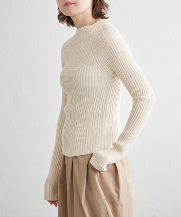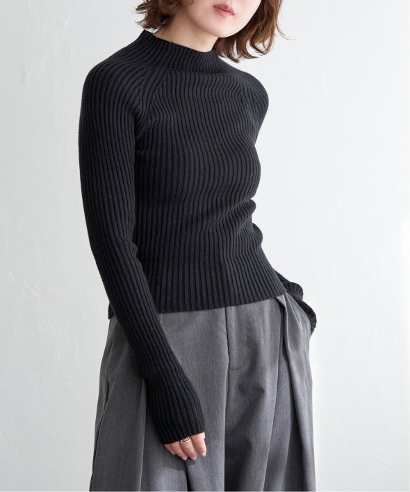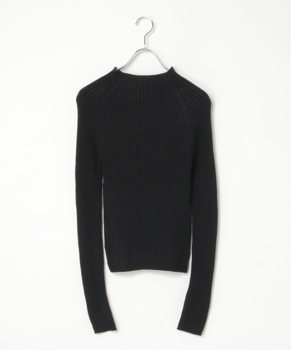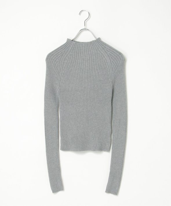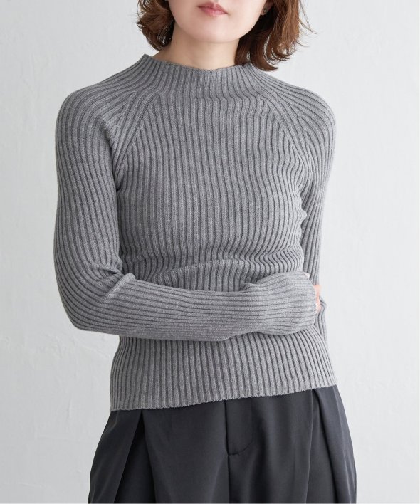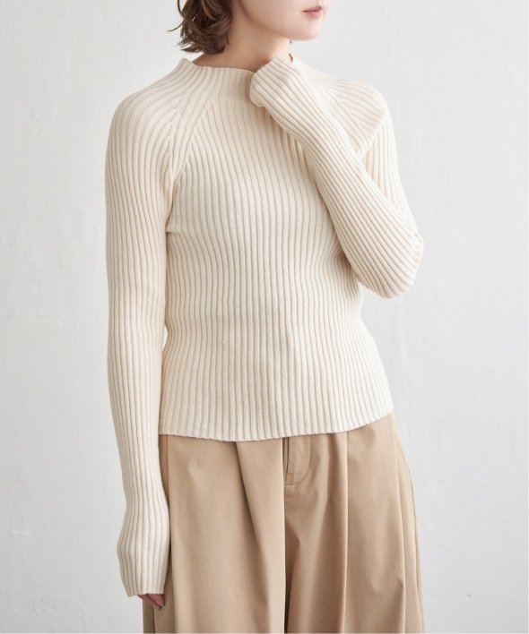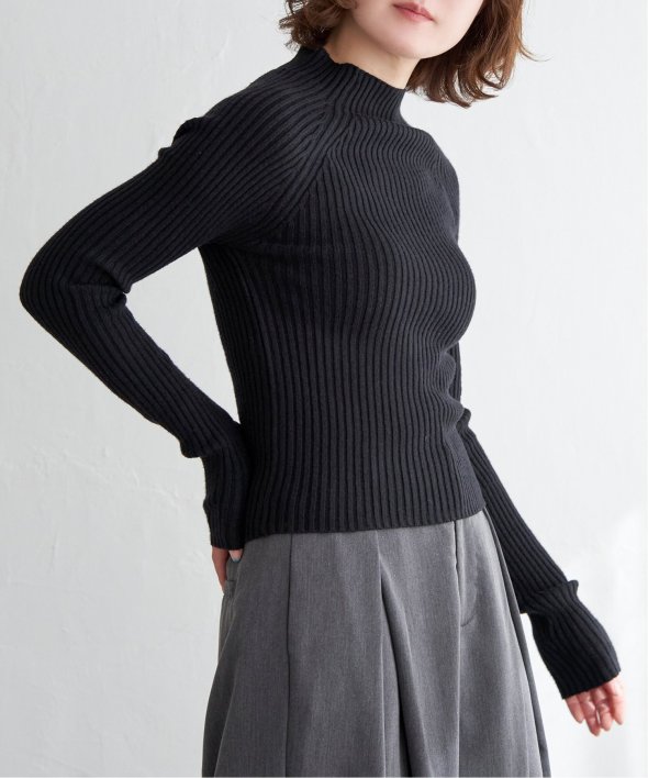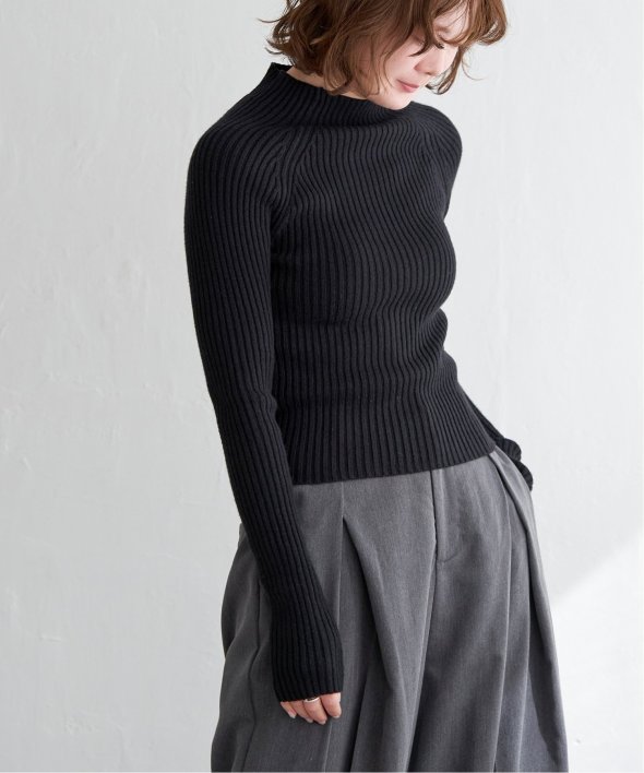 ほどよい高さのプチハイネックで仕上げたリブニット。