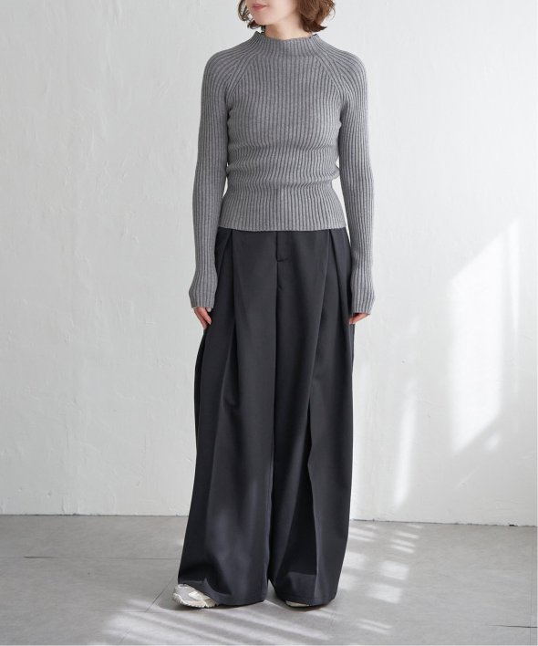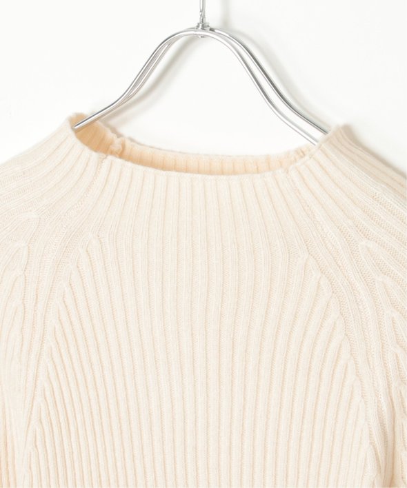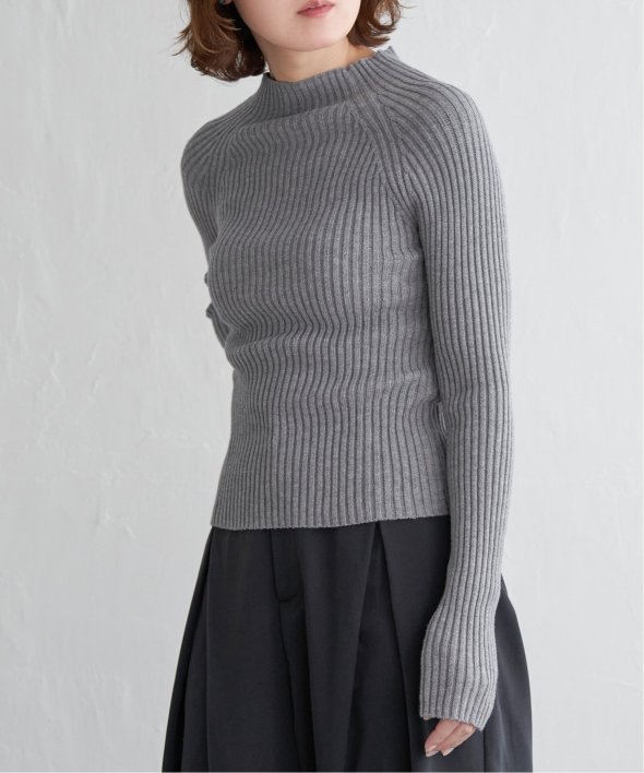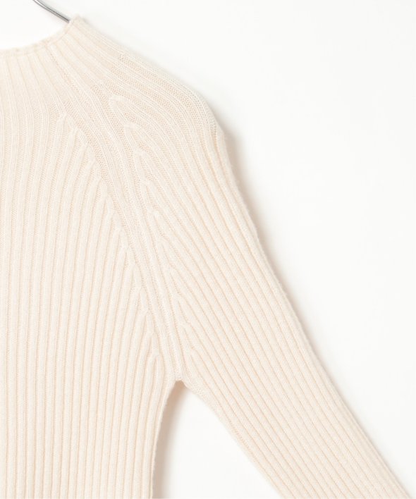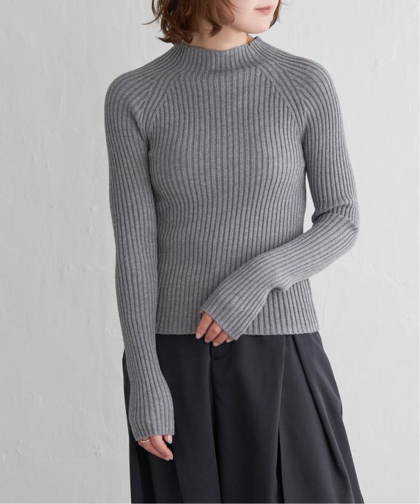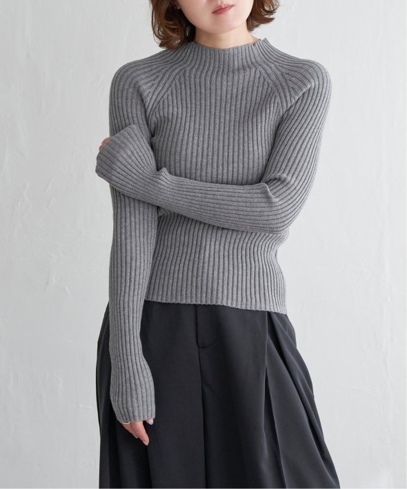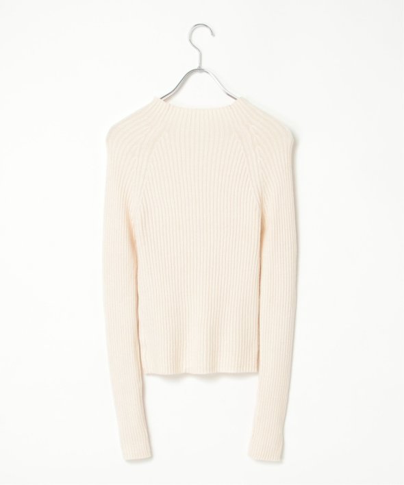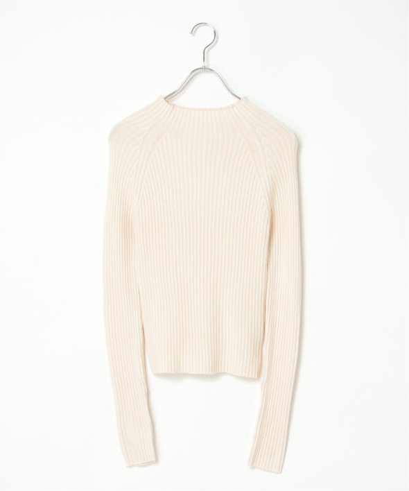 ほどよい高さのプチハイネックで仕上げたリブニット。