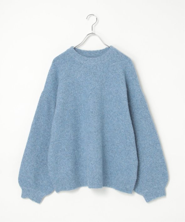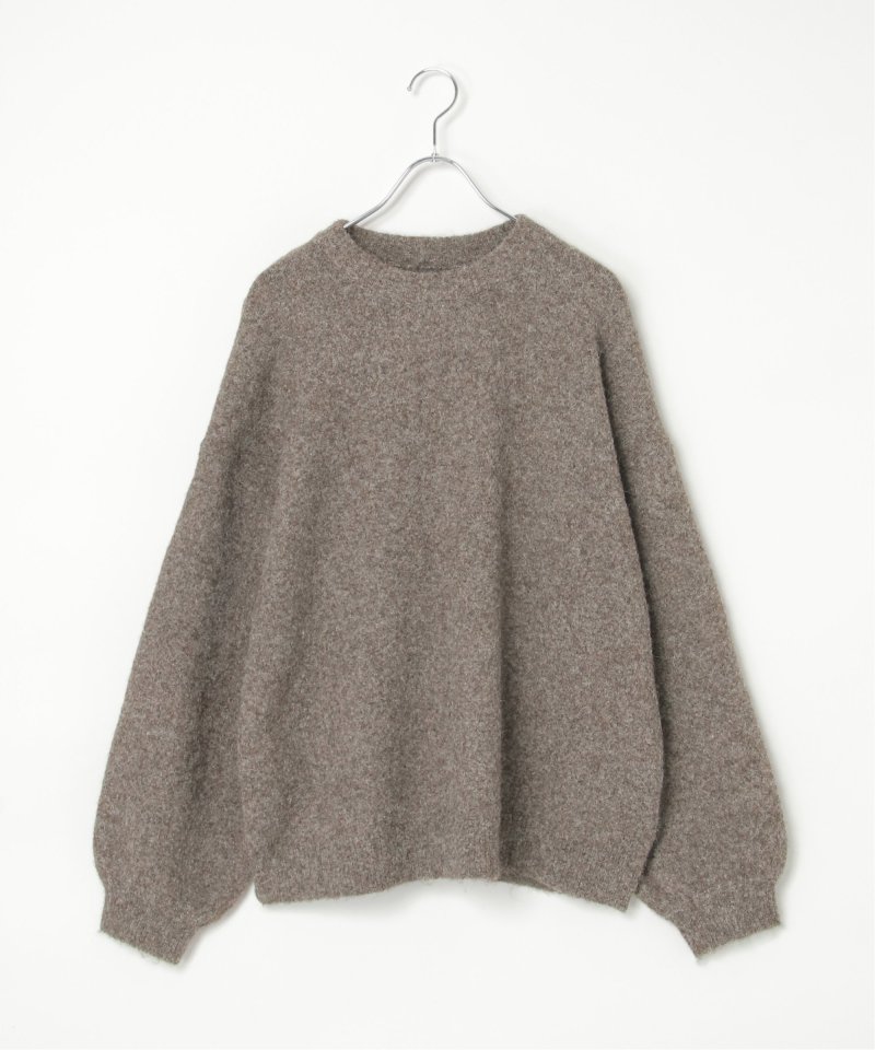 表情豊かな杢調のクルーネックニット。