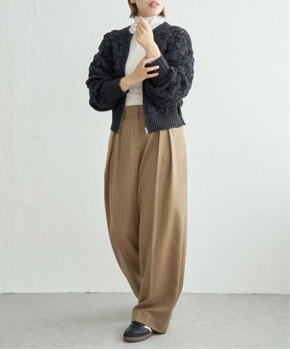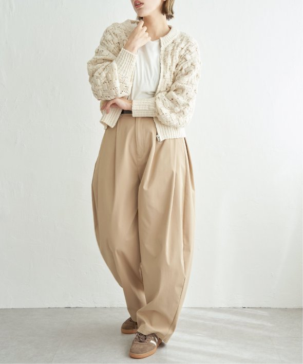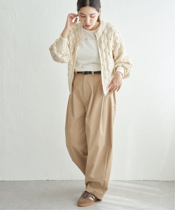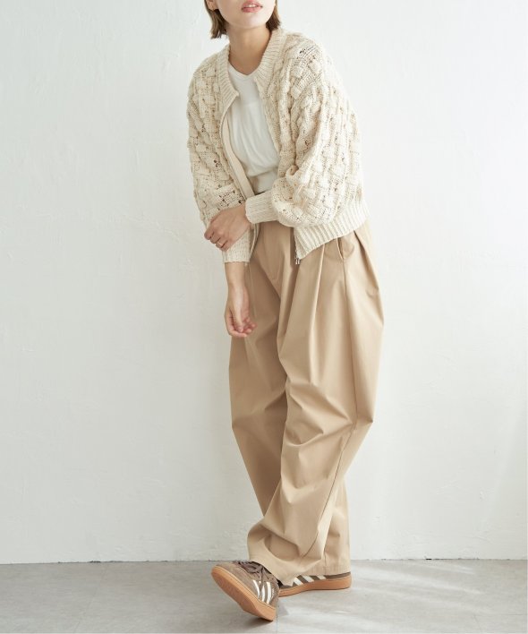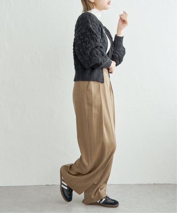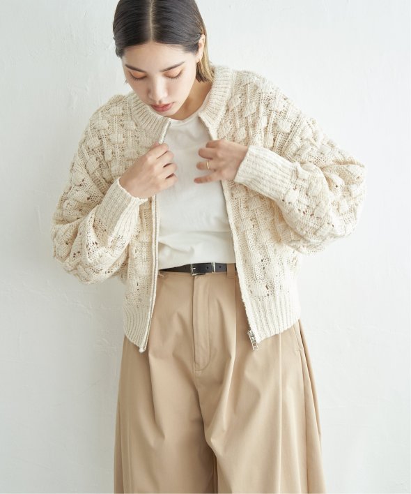 ぽこぽことした編地が特徴で、立体感のある表情がスタイルに動きを与えます。