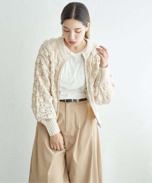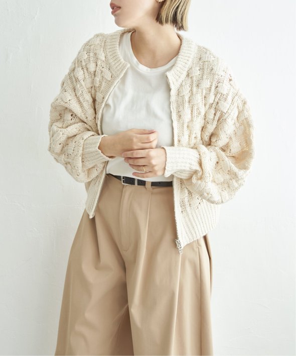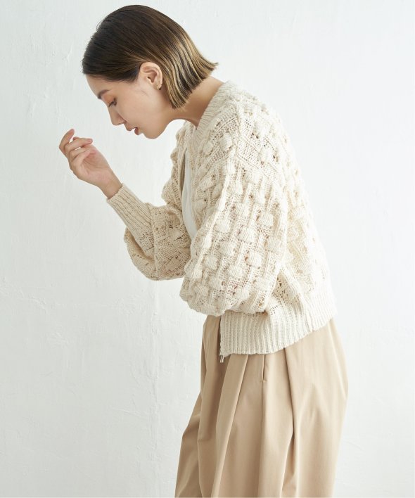 立体的な編地が存在感を放つポコポコニットカーディガン。