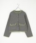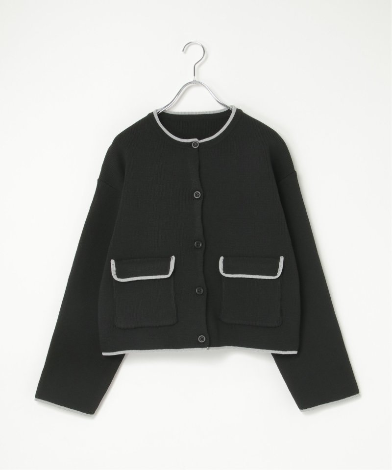 落ち着いたトーンに配色ラインを効かせたクルーネックカーディガン。