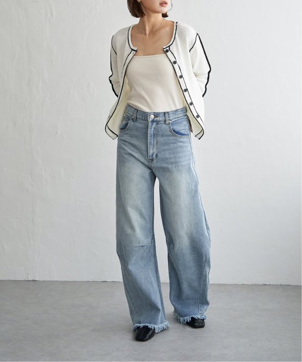 コンパクトな着丈は、ハイウエストボトムやワンピースとの相性も抜群。