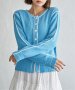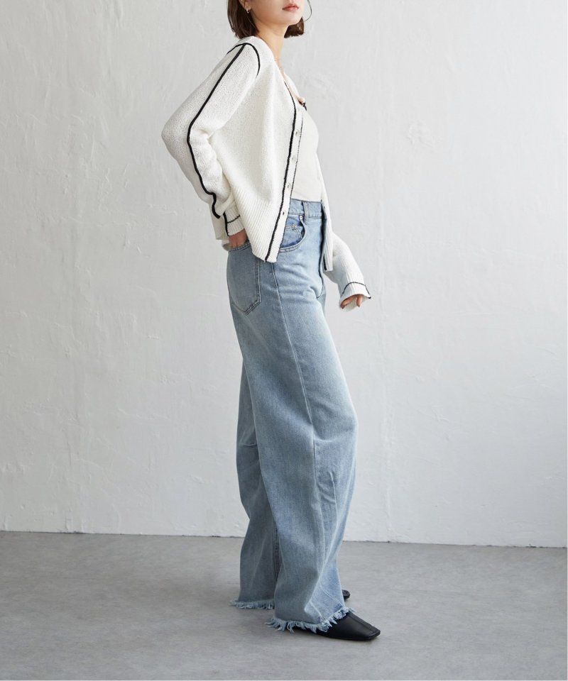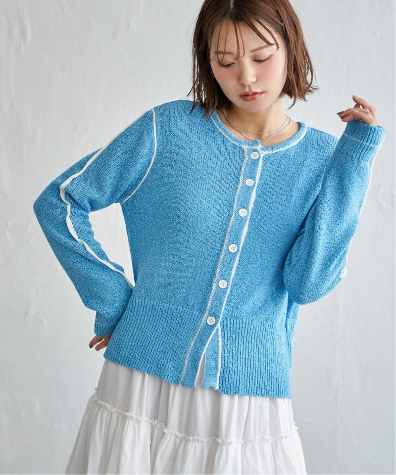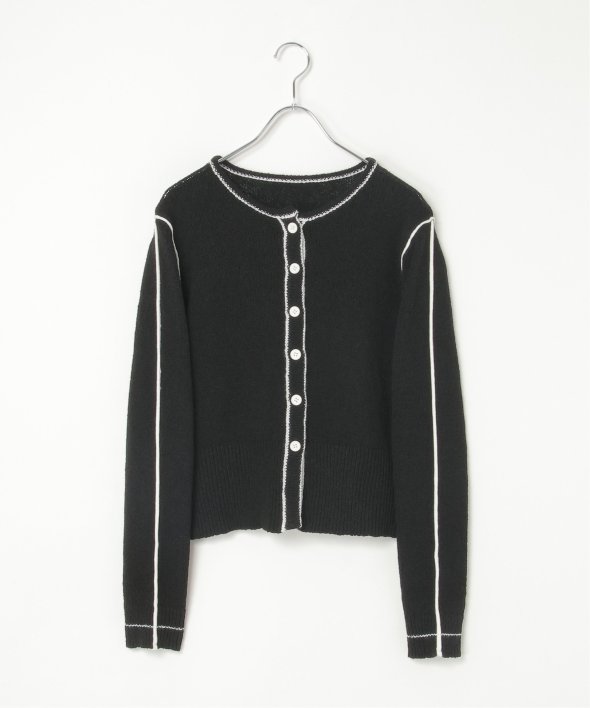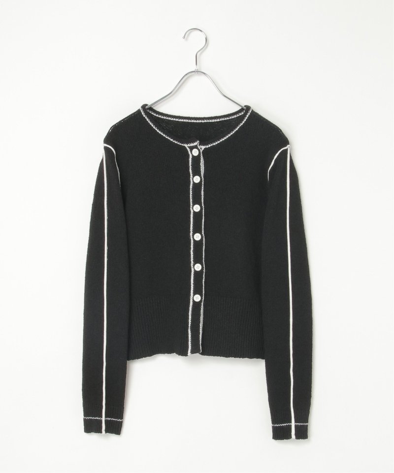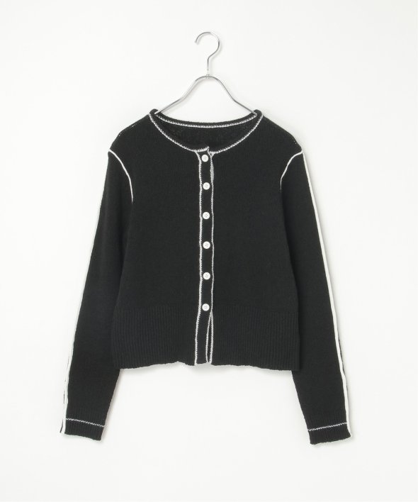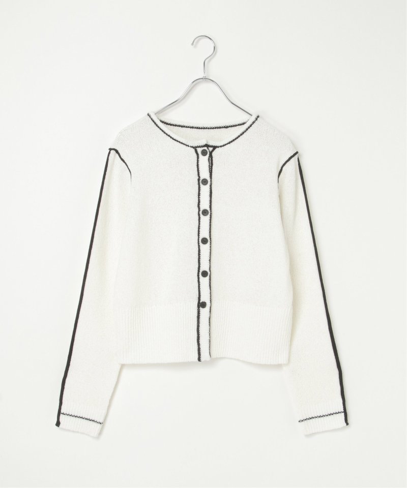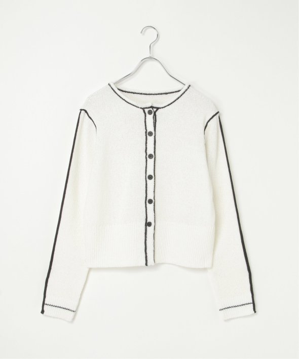 メリハリのある配色ラインが映え、羽織るだけでスタイリングが引き締まる主役級カーディガンです。