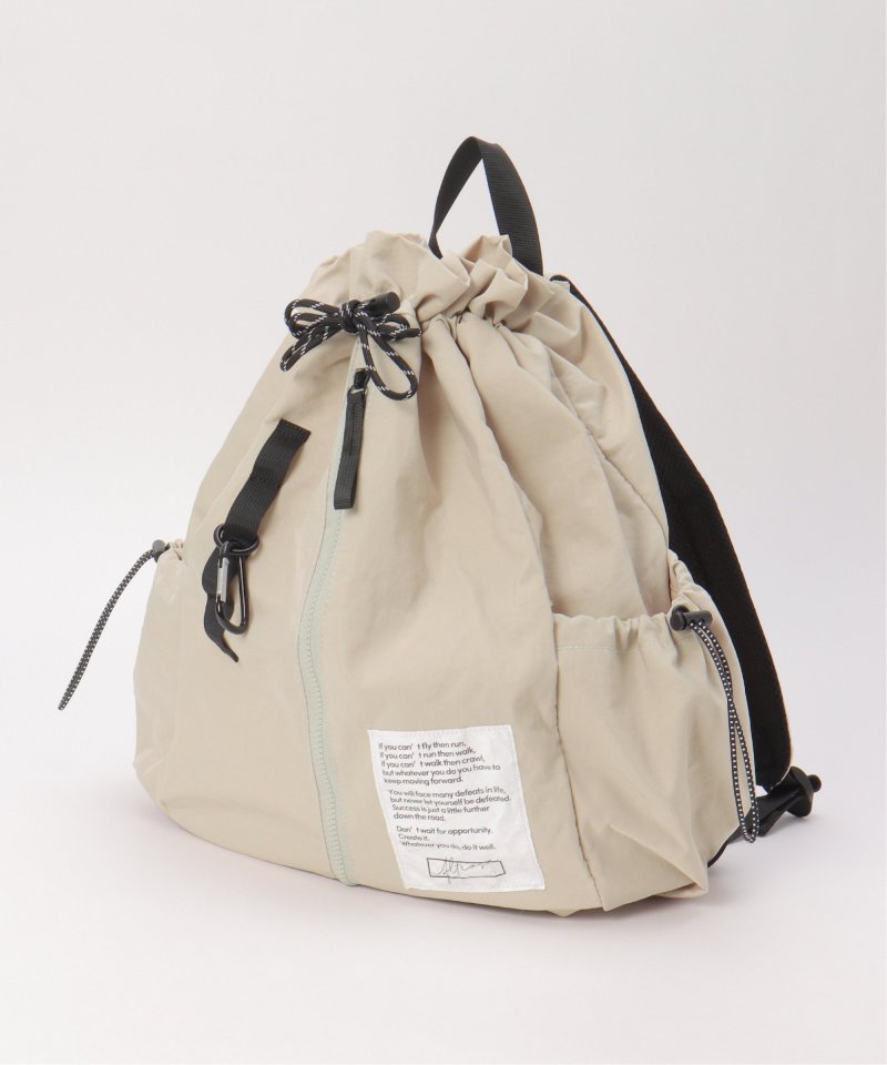 巾着シルエットのナイロンドローコードリュック。