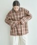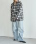 襟を合皮に切り替えたことで、カジュアルなチェックシャツに都会的なニュアンスをプラス。
