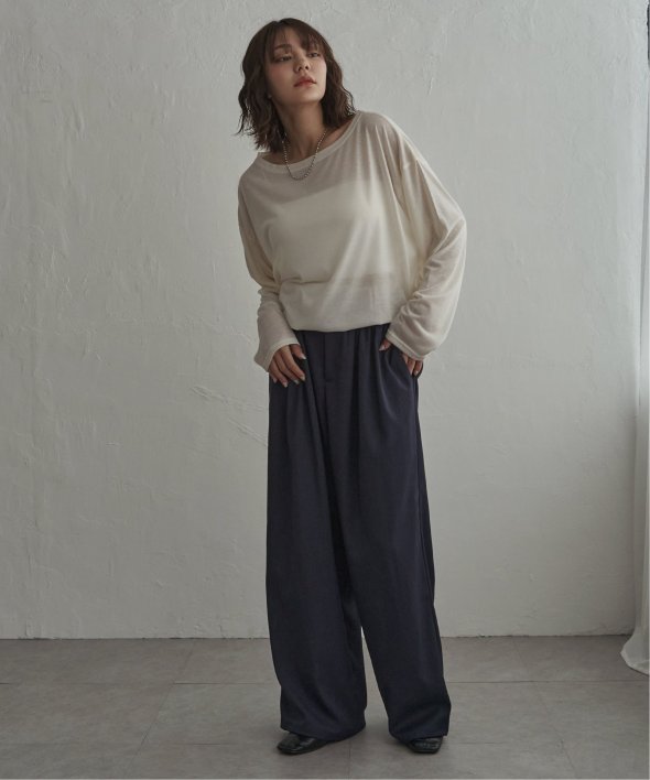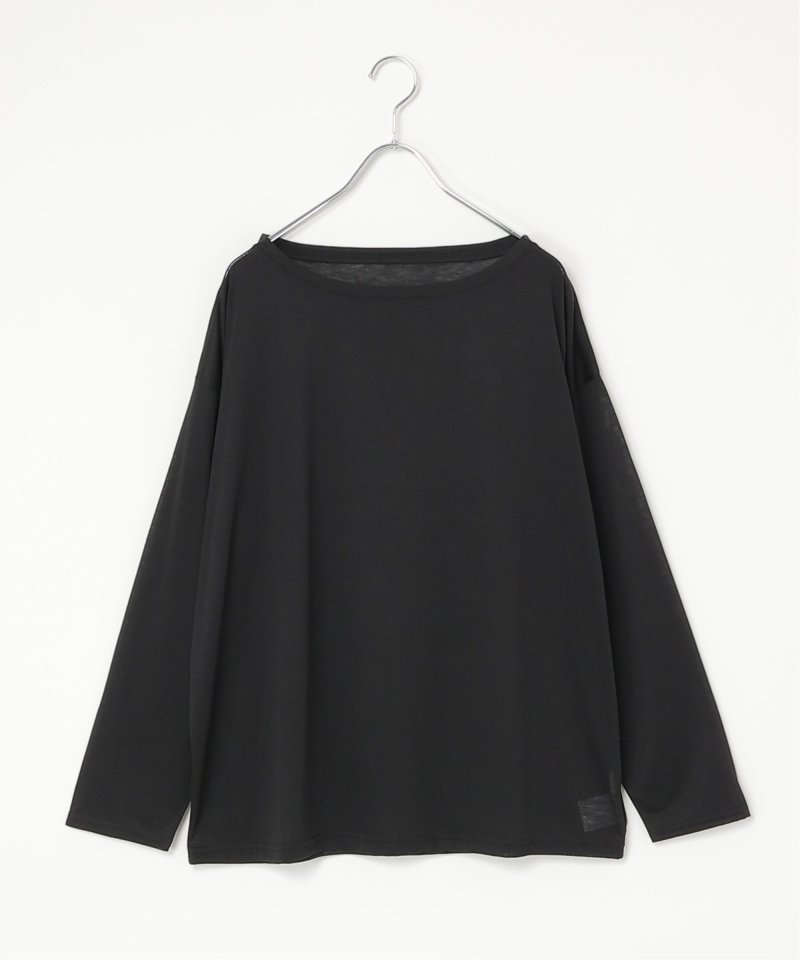 ボートネックが首元をすっきり見せ、身幅を広めに取ったゆったりシルエットでリラックス感のある着こなしが楽しめます。