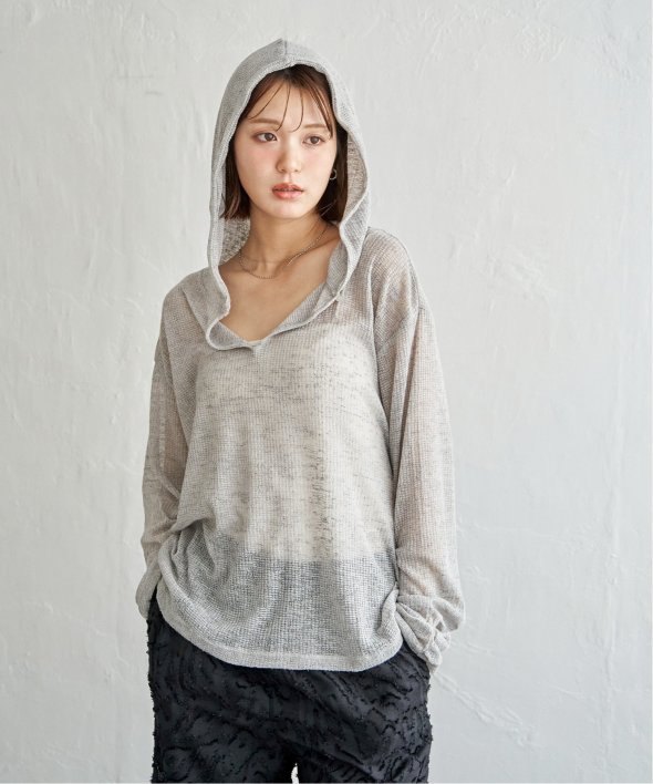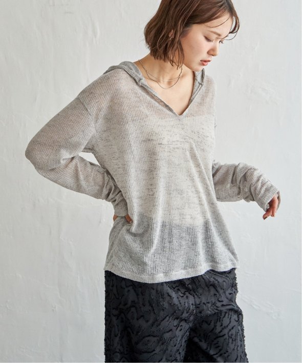 軽やかな透け感とワッフル特有の凹凸が魅力のシアーワッフルロンT。