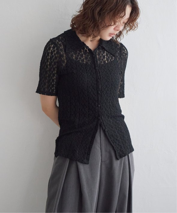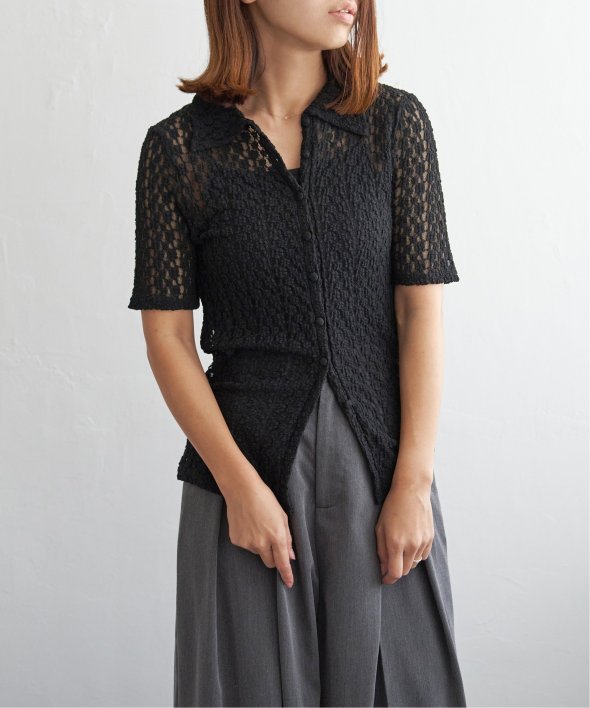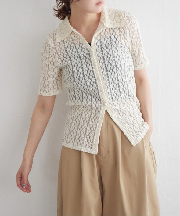 繊細なカットレースで仕立てた半袖カーディガン。