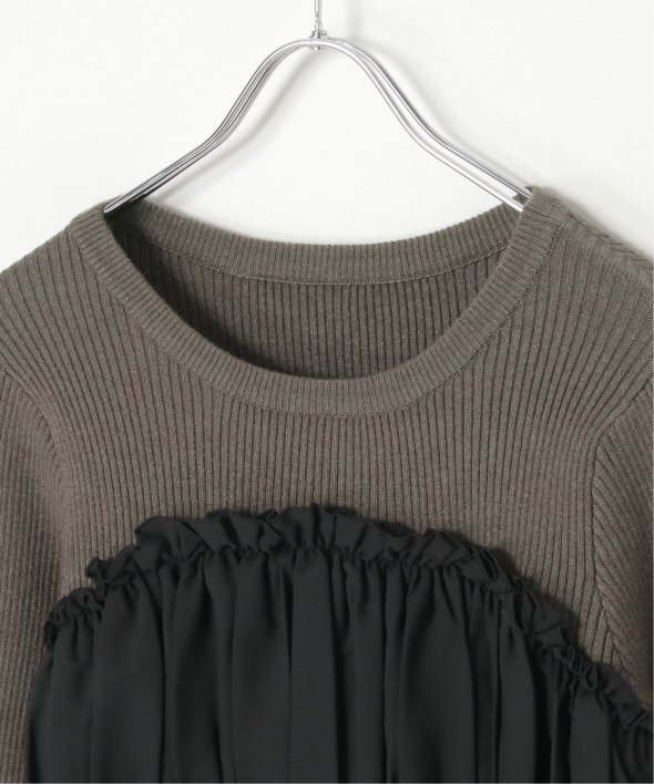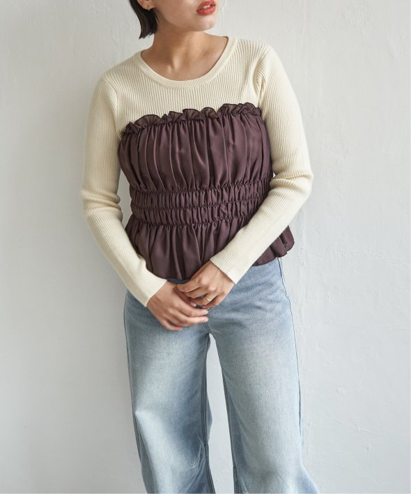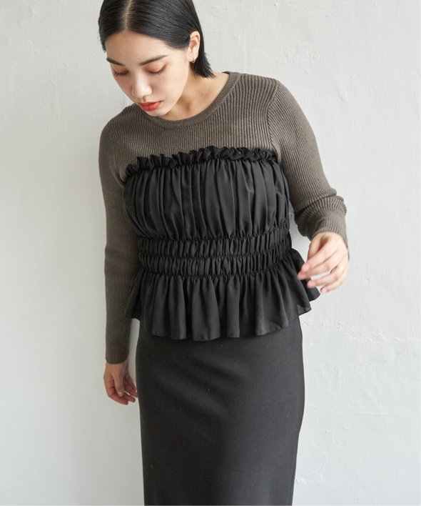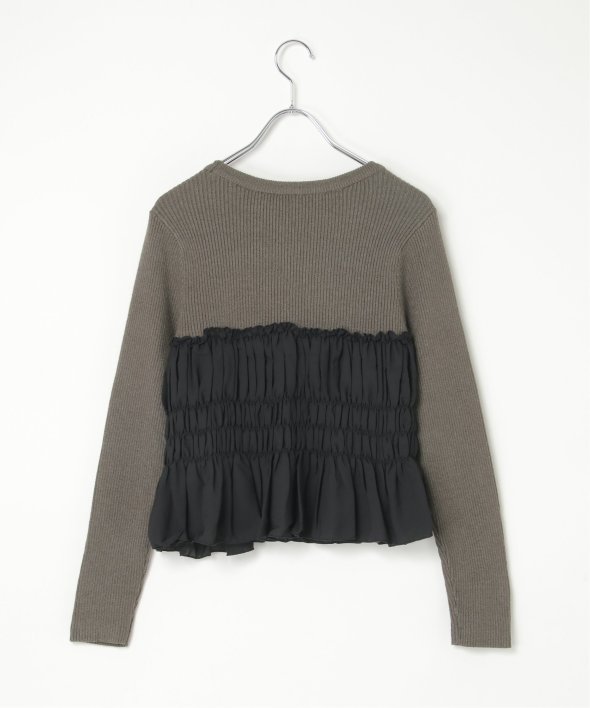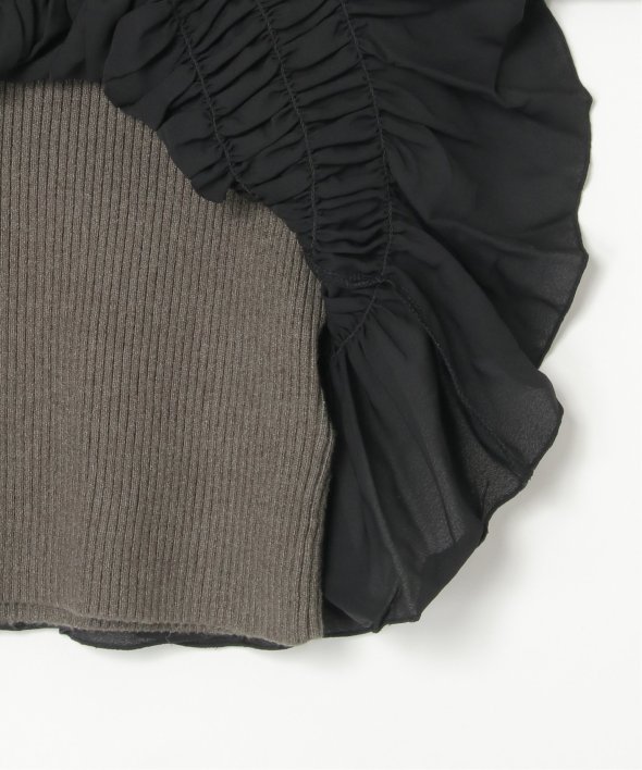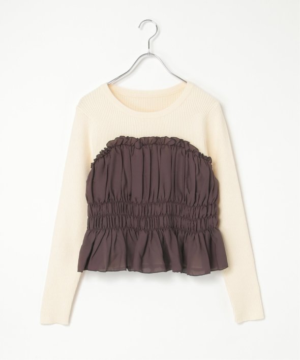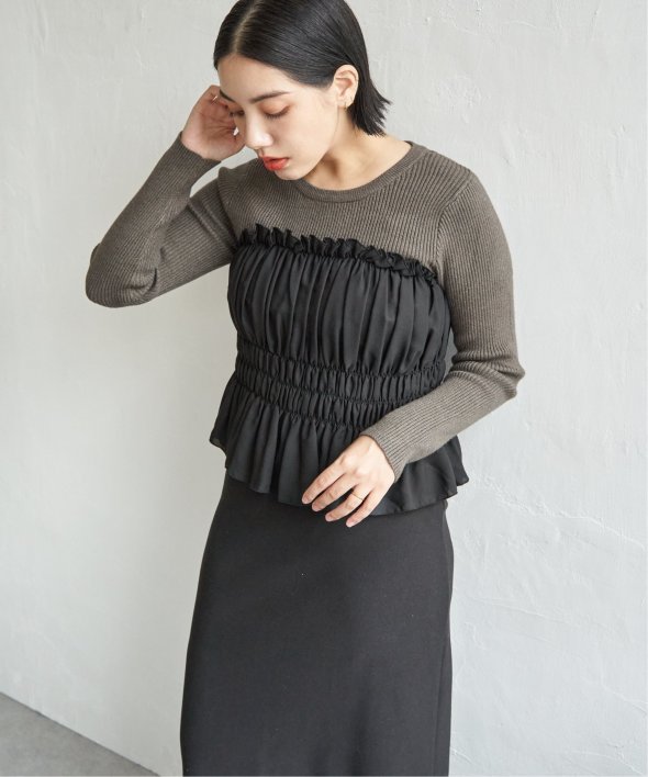 スッキリ見えするリブニットに、ギャザーをあしらい程よくふんわりとしたジョーゼットを組み合わせました。