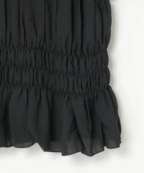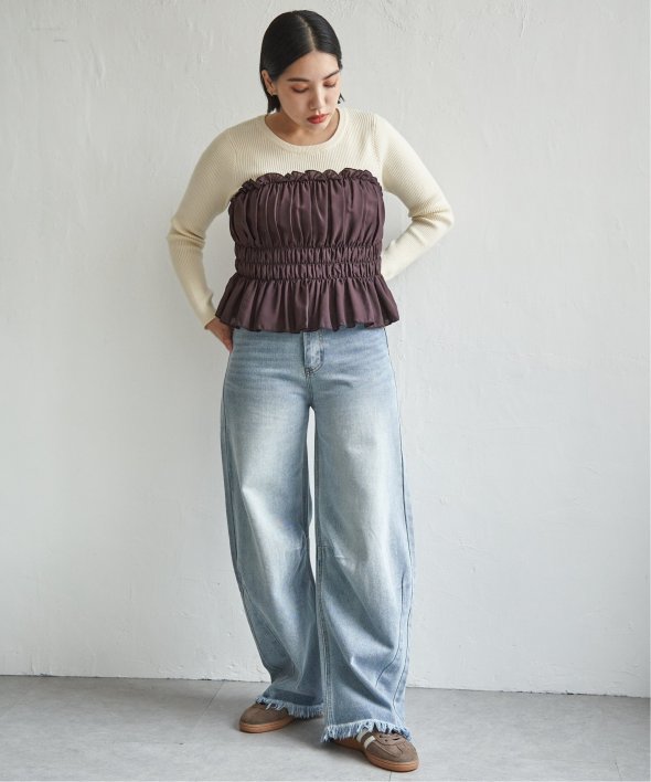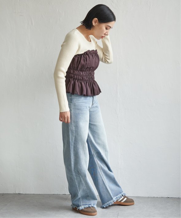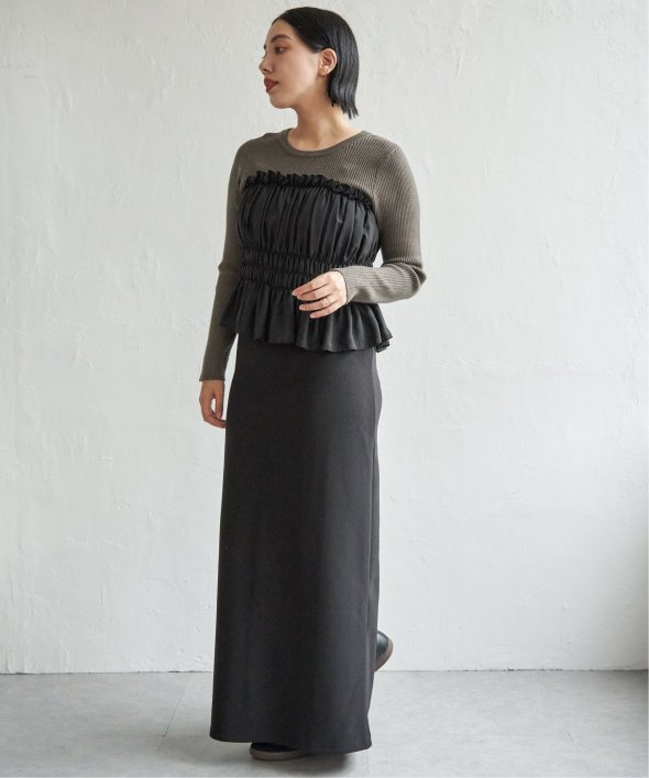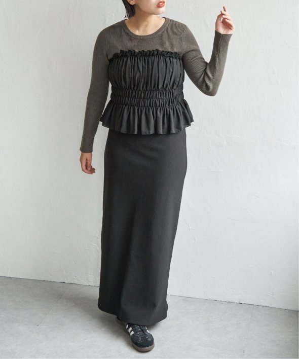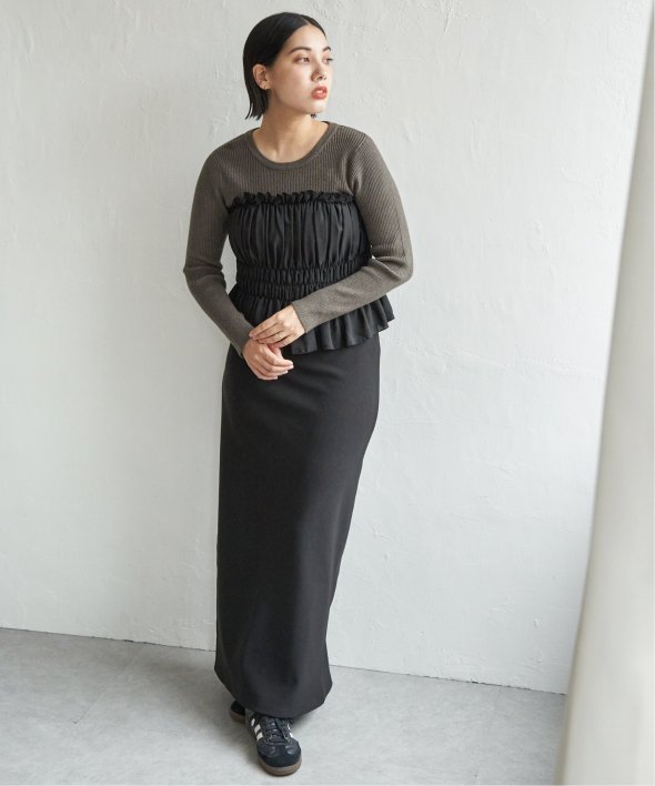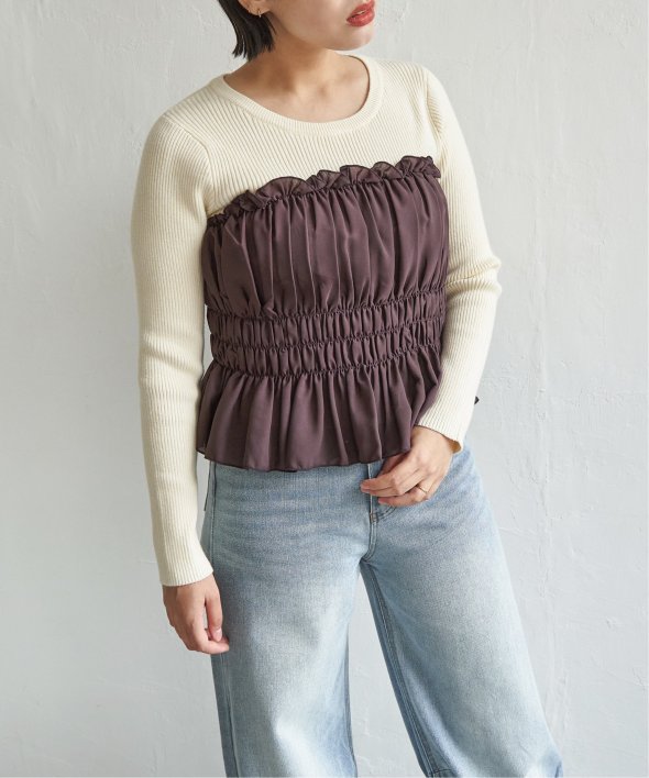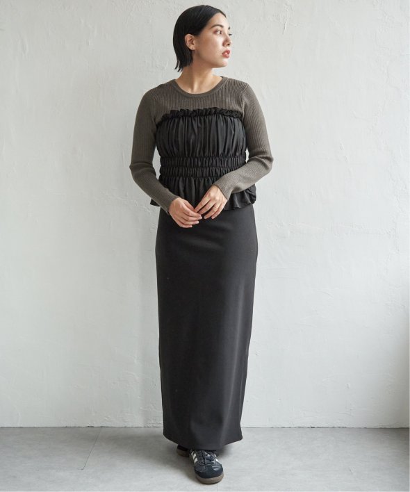スッキリ見えするリブニットに、ギャザーをあしらい程よくふんわりとしたジョーゼットを組み合わせました。