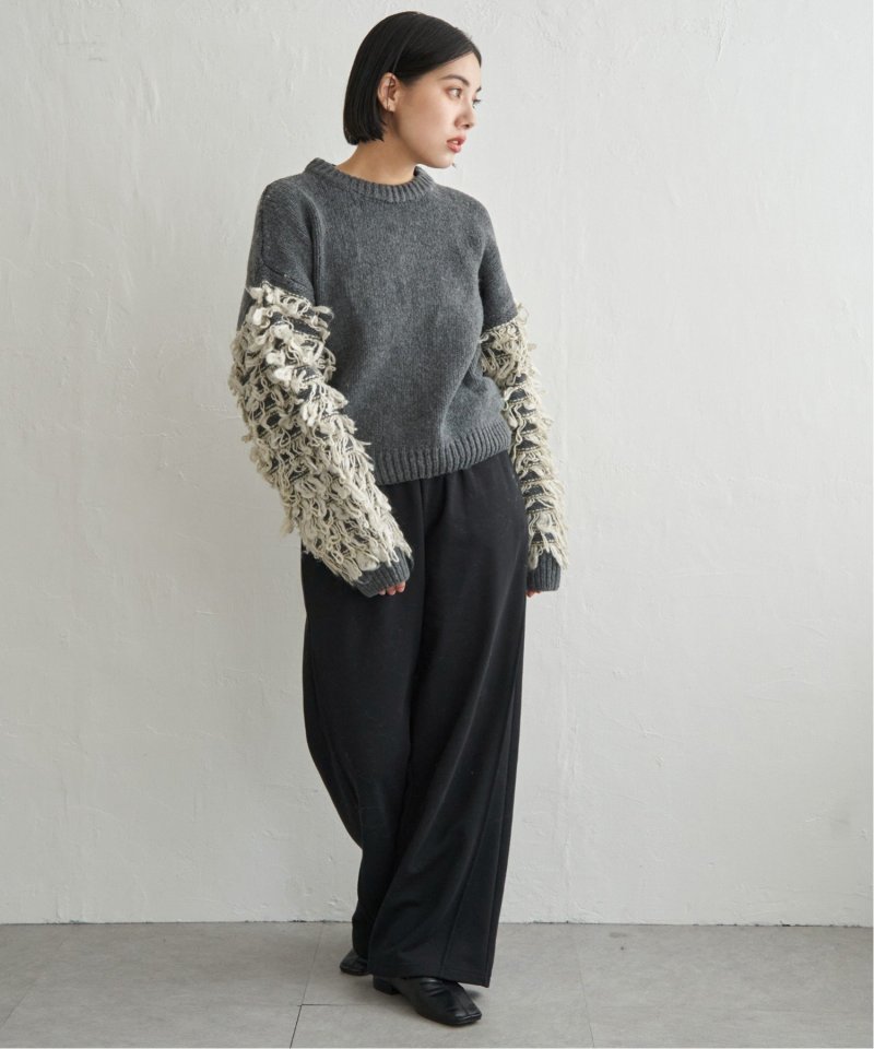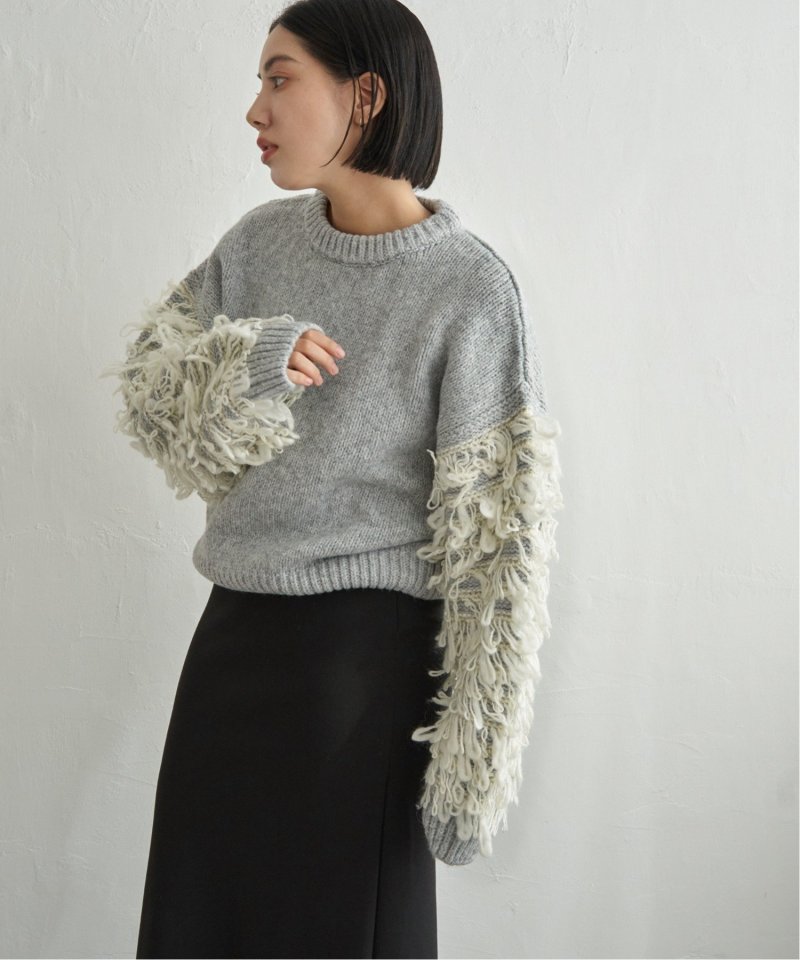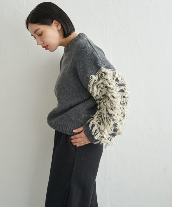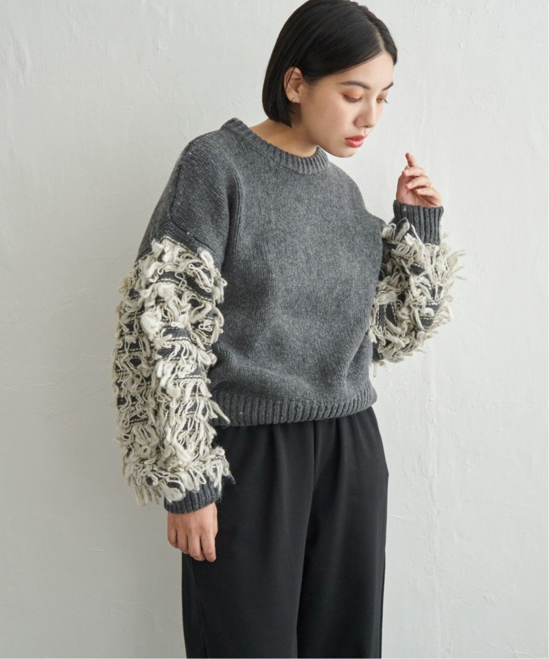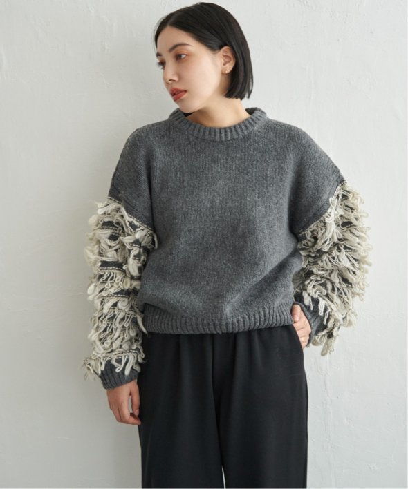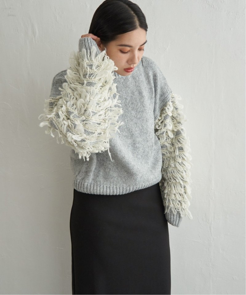 袖をループ編みに切り替えたデザイン性のあるニット。