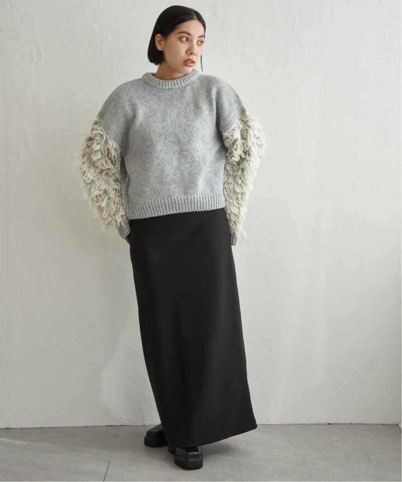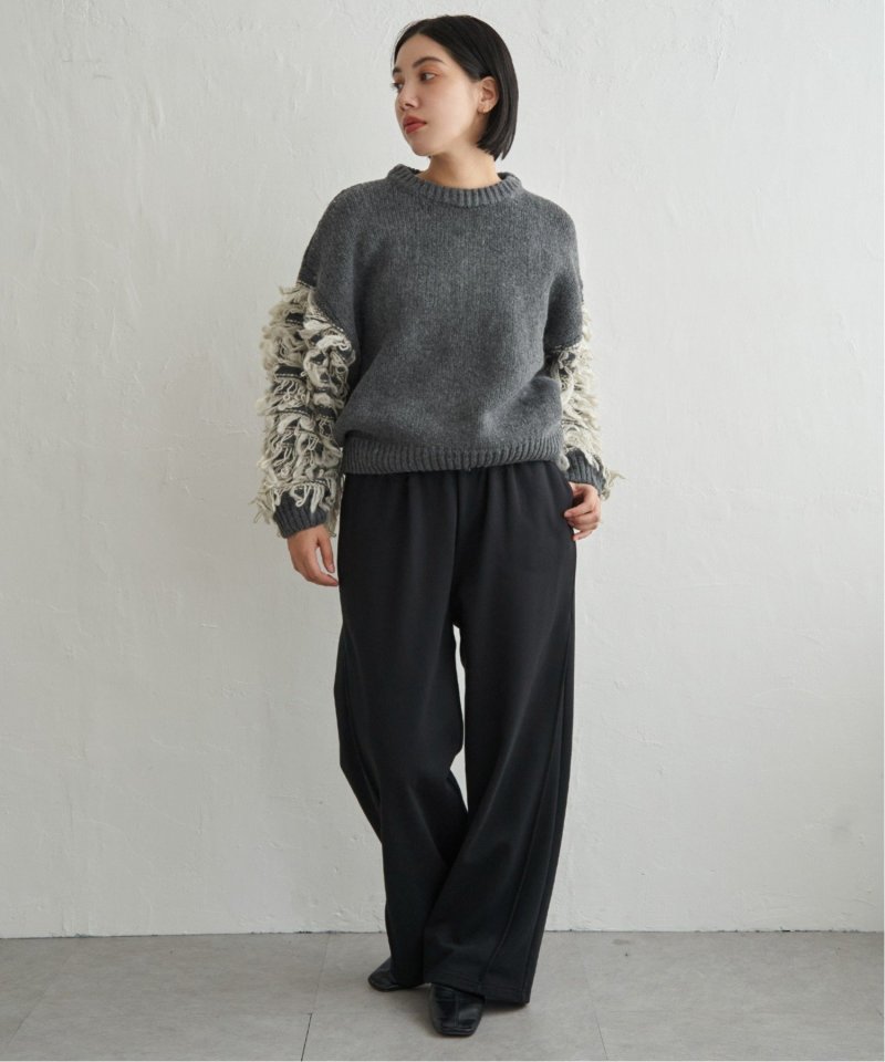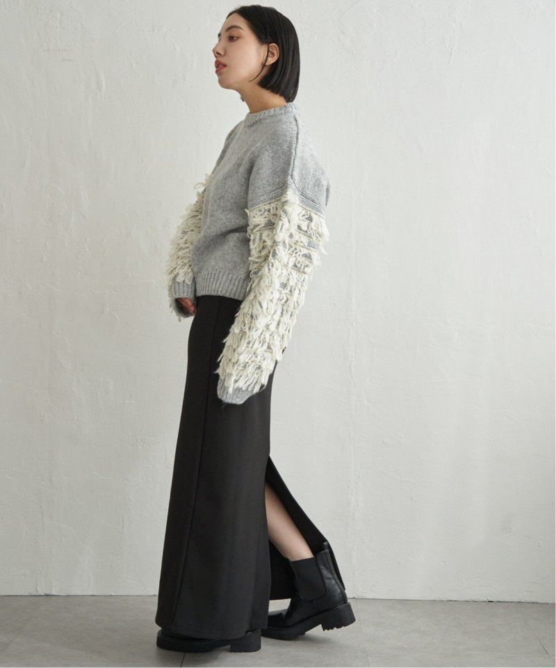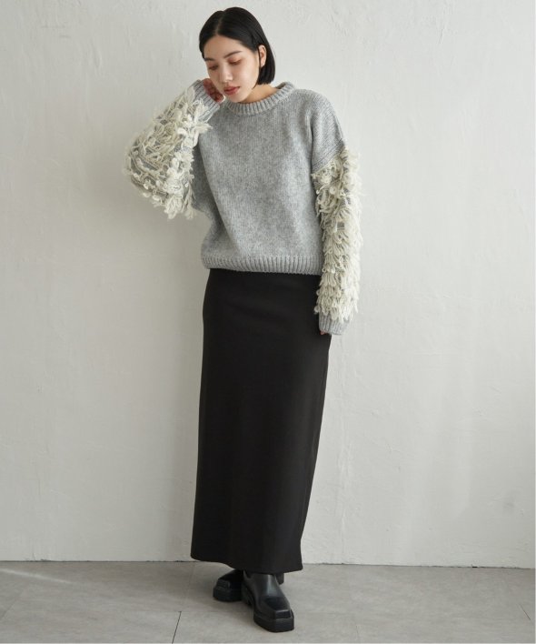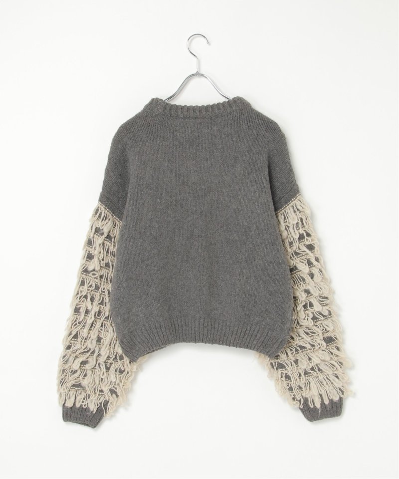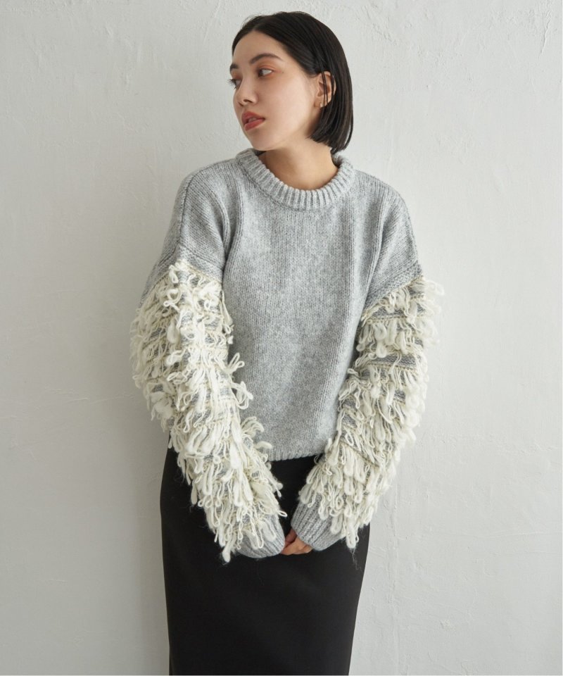 袖をループ編みに切り替えたデザイン性のあるニット。