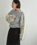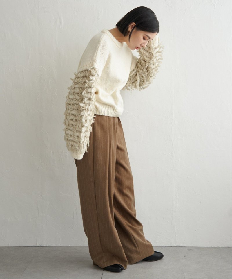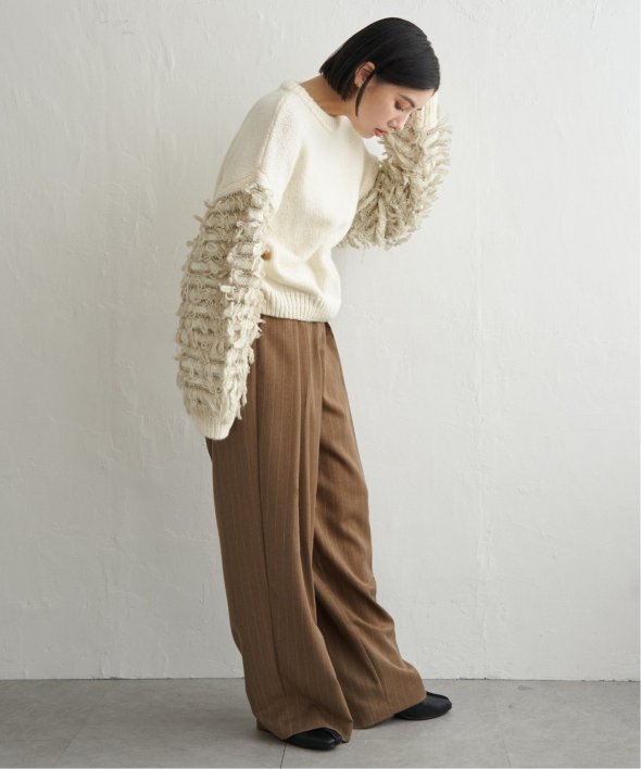 ループ編みの切り替えで袖にボリュームを持たせた袖コンシャスなニット。