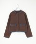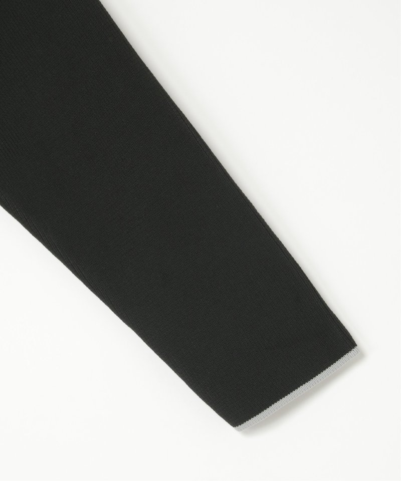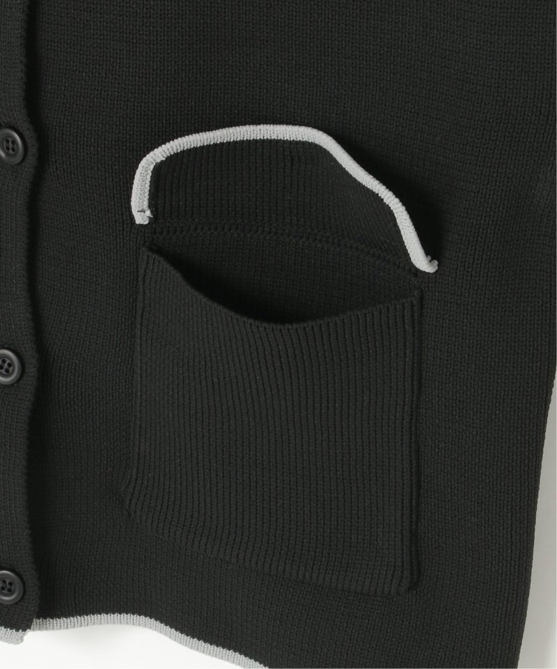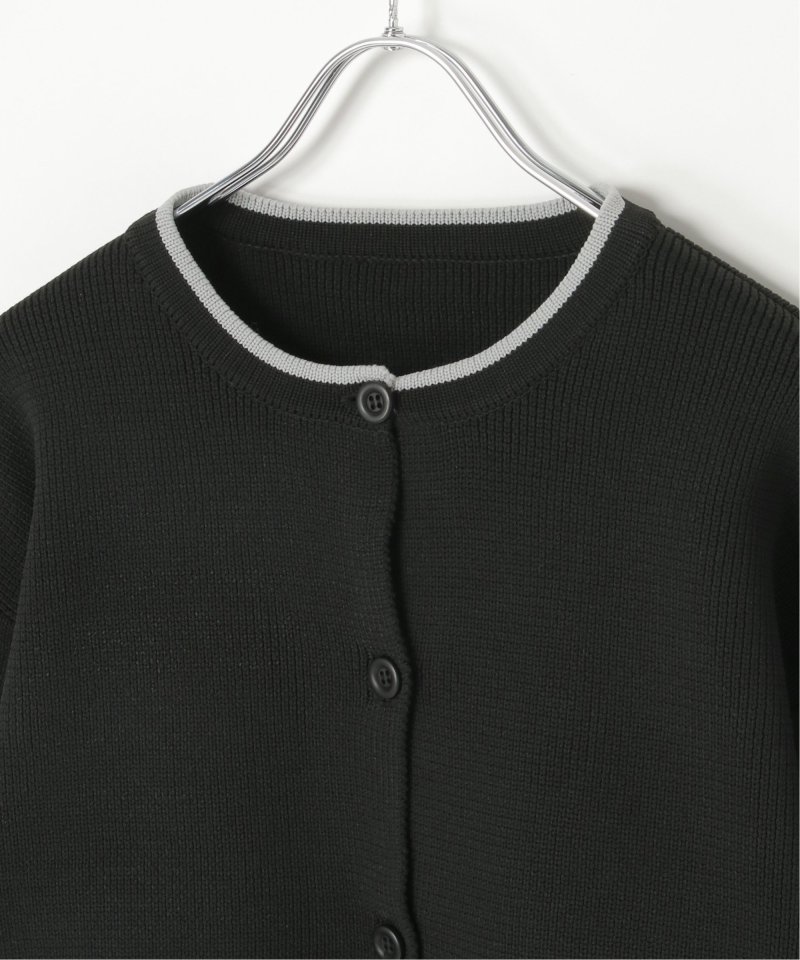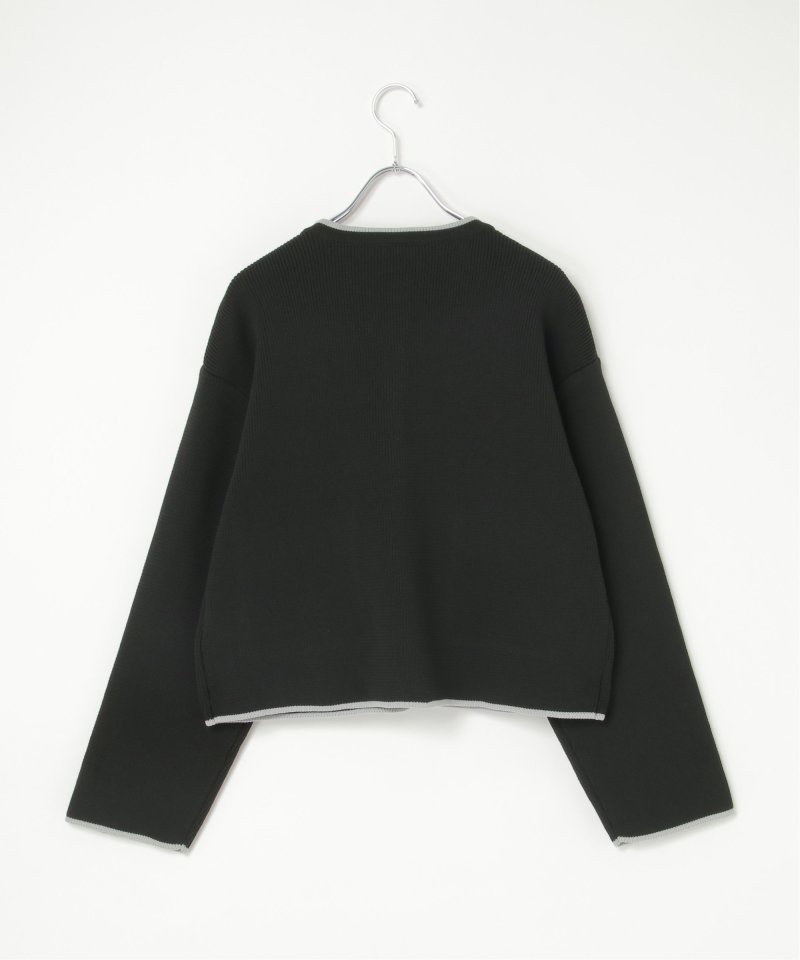 落ち着いたトーンに配色ラインを効かせたクルーネックカーディガン。