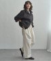 たっぷりとした身幅とボリュームスリーブが印象的なビッグシルエットで、春アウターとして取り入れやすい一着です。
