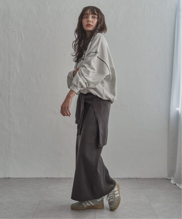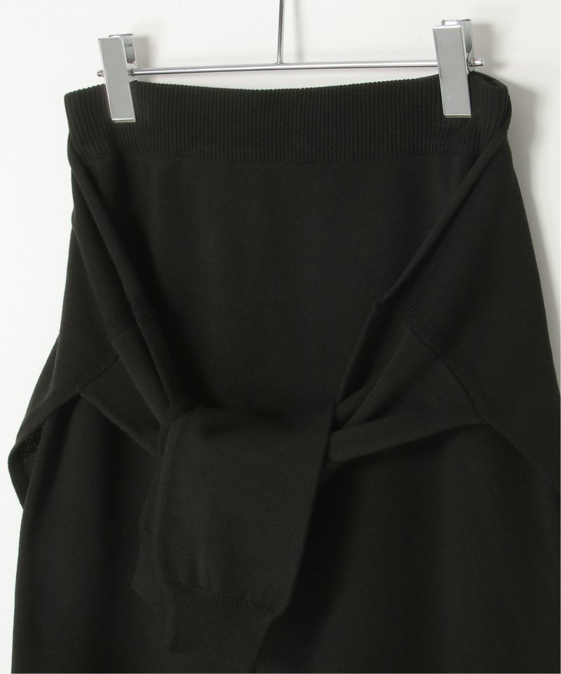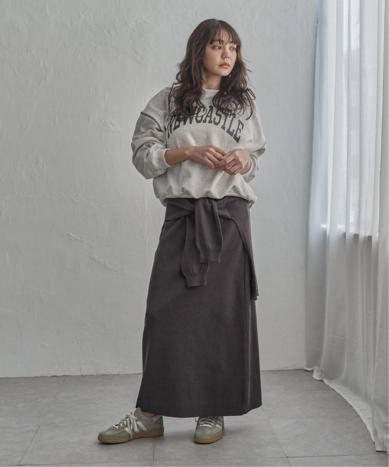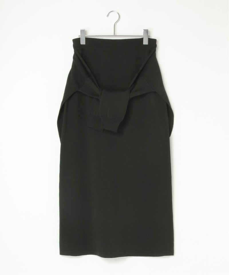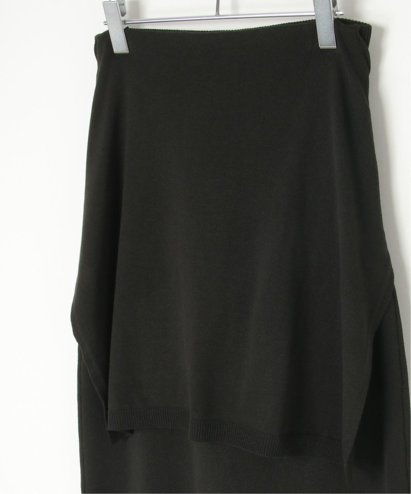 まるでトップスを腰巻きしているようなユニークなデザインのフェイクレイヤードニットスカート。