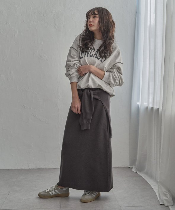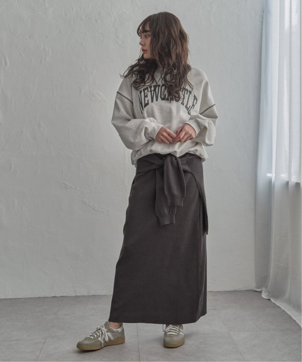 スウェットやショート丈ニットを合わせたバランス感のあるスタイリングがおすすめ。