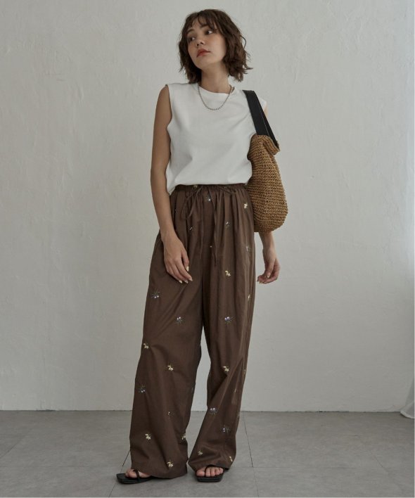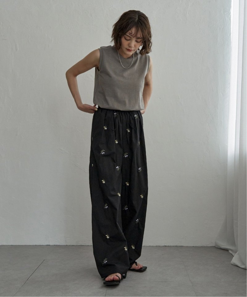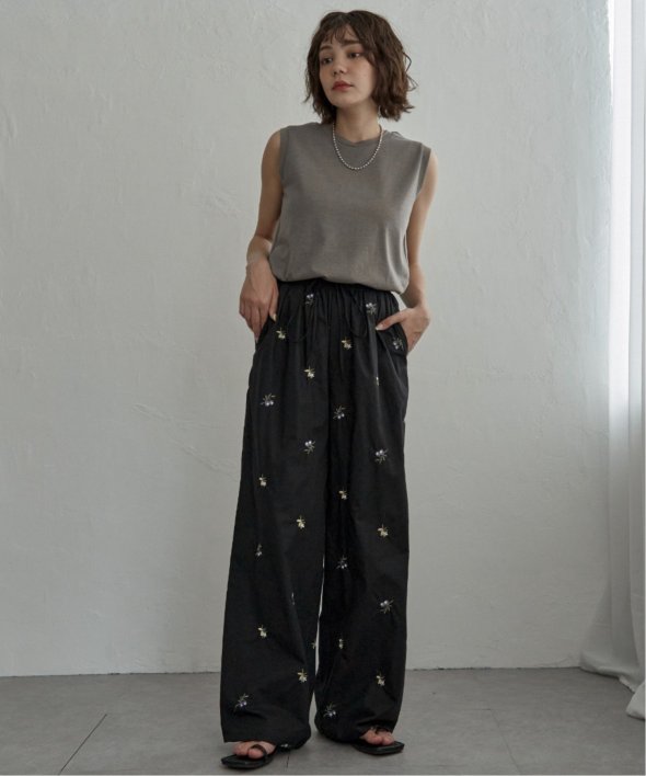 【先行予約】花柄刺繍イージーパンツ